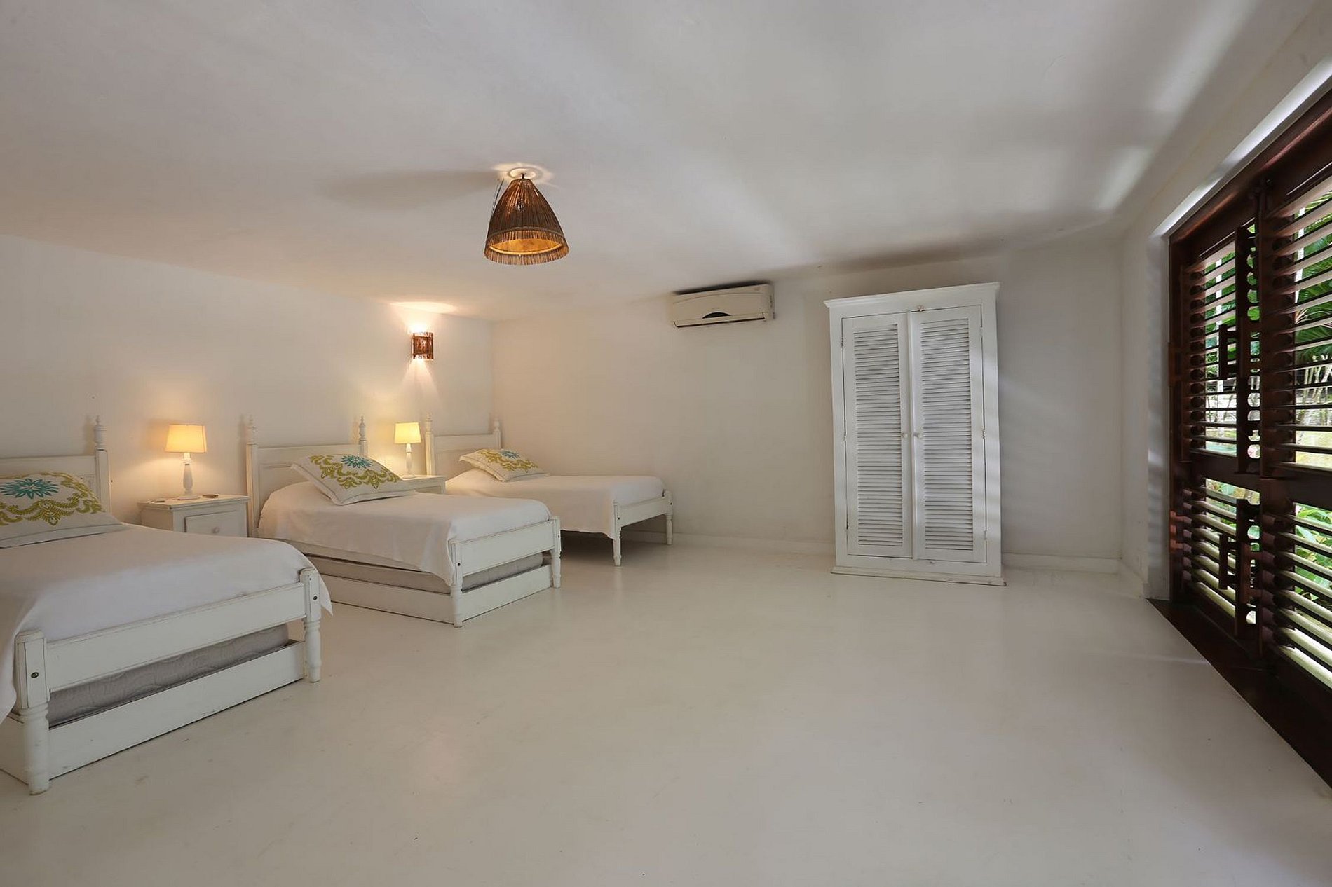 Suíte 6: 03 camas de solteiro (reversível para king size) 02 bicamas, ar condicionado, vista jardim.