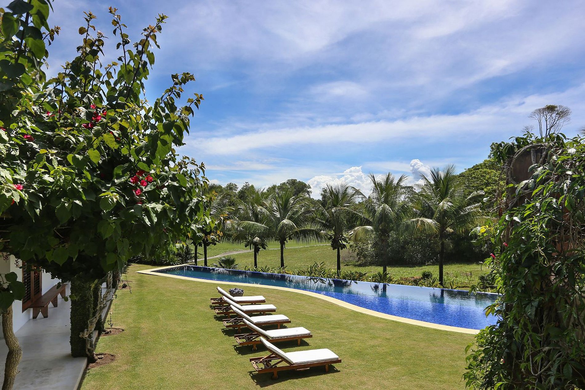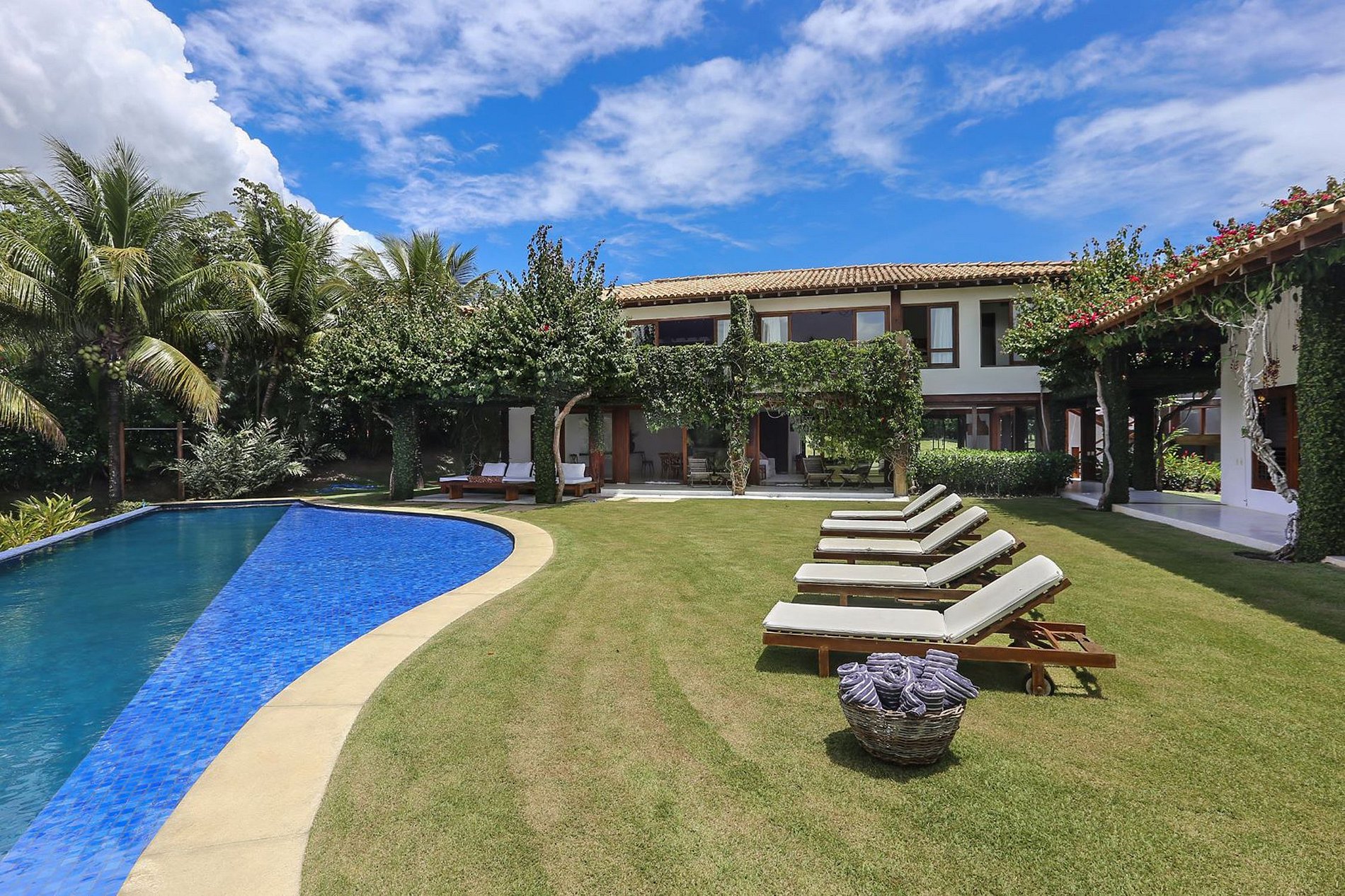 Linda piscina raia de 25m x 3m com sua linda vista no campo de golfe, a grande pérgola, as varandas e redes são convites para curtir os dias ensolarados da Bahia.