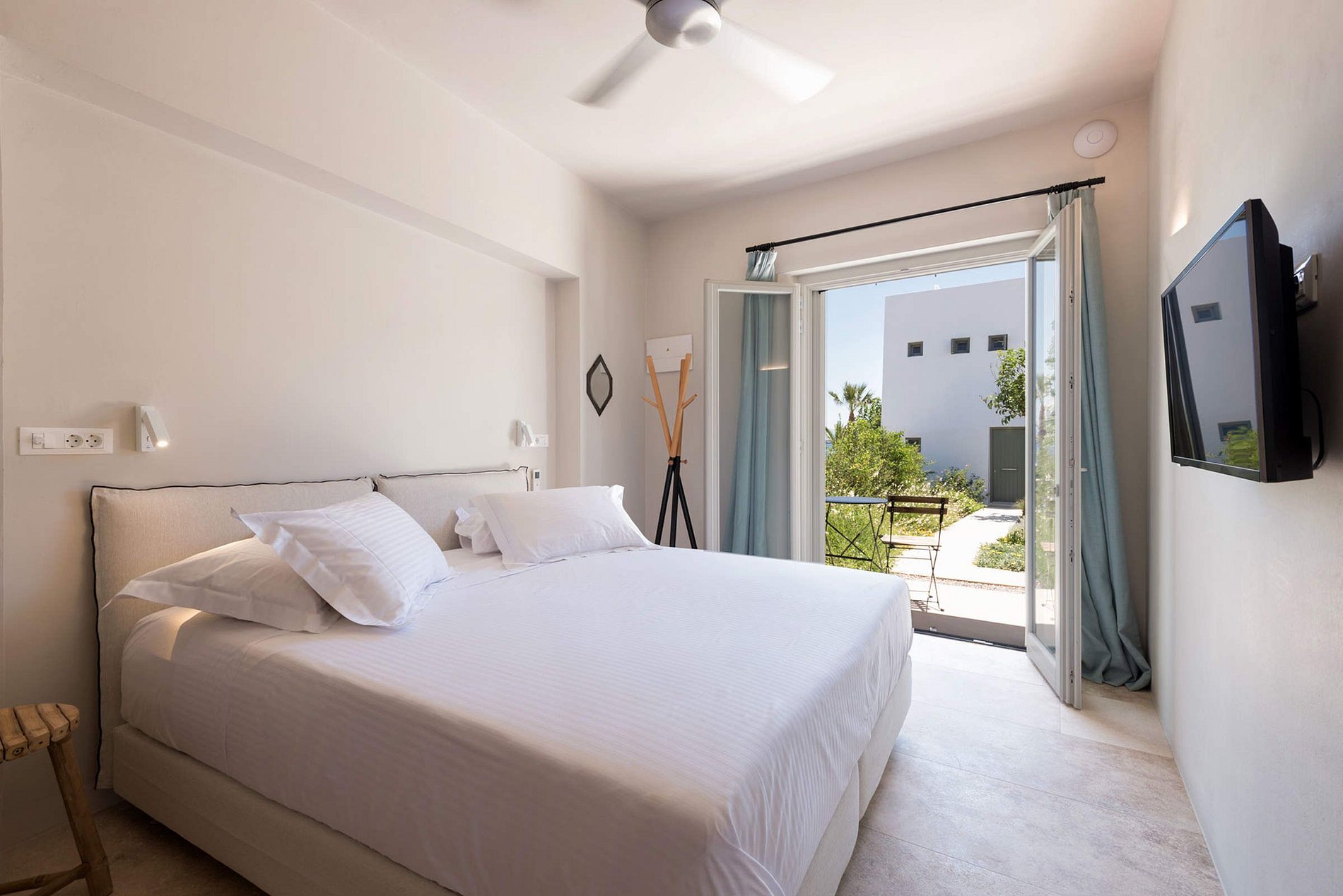 Esta propriedade moderna, projetada com uma estética arquitetônica excelente, está totalmente harmonizada com a simplicidade e atemporalidade da paisagem das Cíclades.
