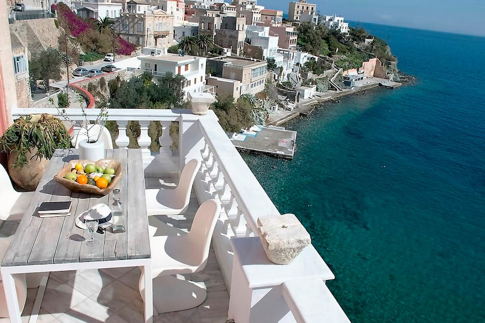 A villa é uma mansão renovada, construída em 1908, em uma localização única entre o Mar Egeu e a icônica catedral de Agios Nikolaos. Perto está a histórica Casa Prefeita de Ermoupolis de Ziller e o Teatro Apollon, no bairro chamado Vaporia.
