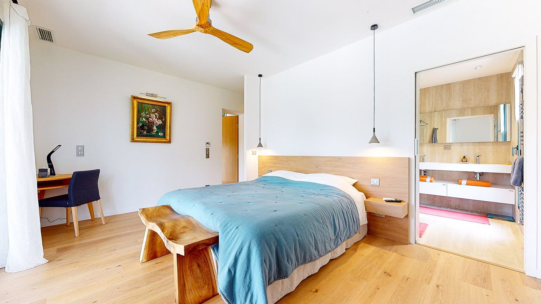 Com 260 m² em um único andar, a Villa Cigala pode acomodar até dez hóspedes em seus cinco quartos com suíte, cada um com banheiros refinados. O amplo terreno de 3600 m², adornado com palmeiras e dominado por um majestoso pinheiro, realça o charme autêntico deste lugar excepcional.