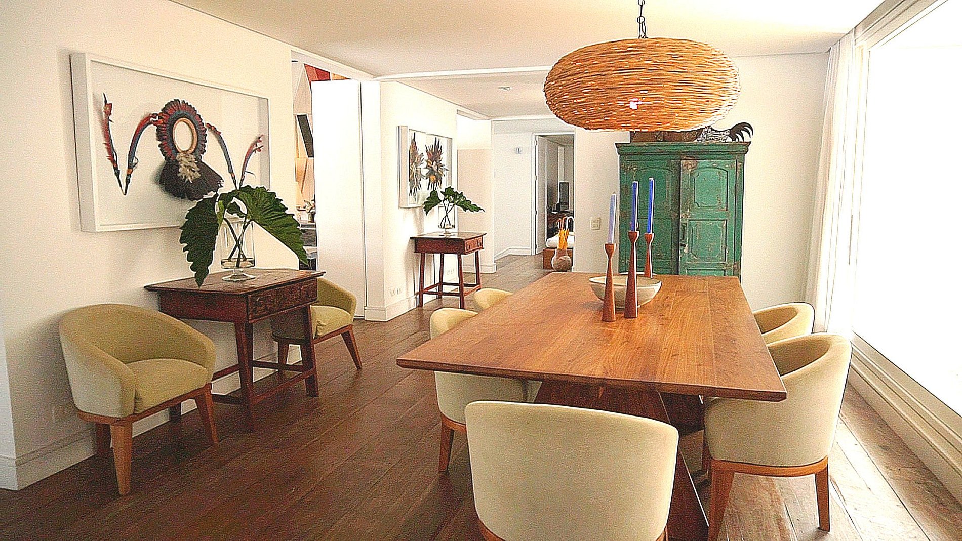 Com 635m² de área construída em um terreno de 2.000m², a casa é composta por cinco salas, cinco suítes e dois banheiros. As salas são amplas e bem iluminadas, com mobiliário de design e decoração brasileira que valoriza artistas e artesãos locais. A sala de estar aberta para o terraço e a piscina é o lugar ideal para receber amigos e familiares.