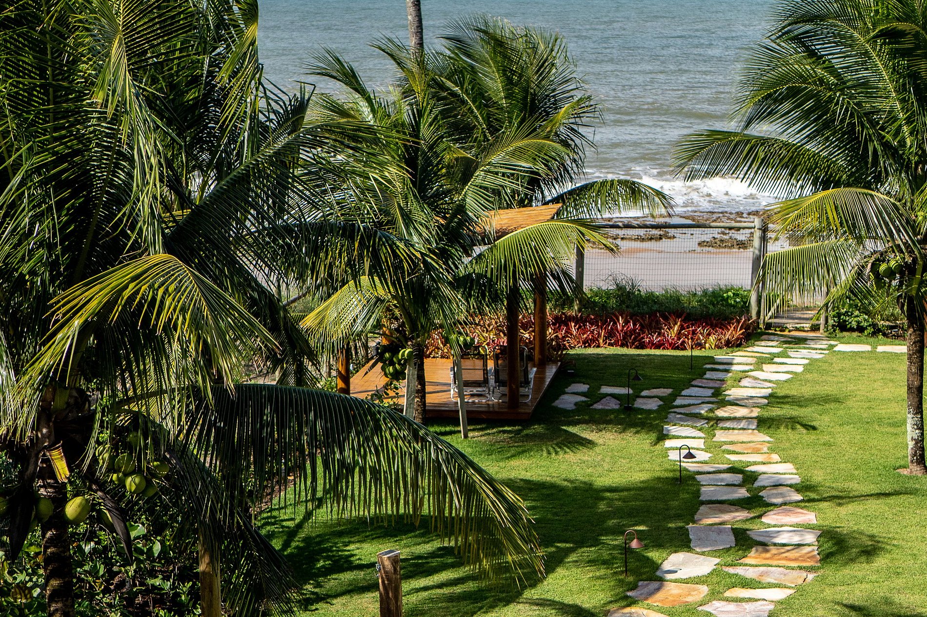 No primeiro andar são duas lindas suites com vista mar. Uma com cama queen size e beliche. E a suite master com cama king size e com bela escrivaninha para momentos de inspiração.