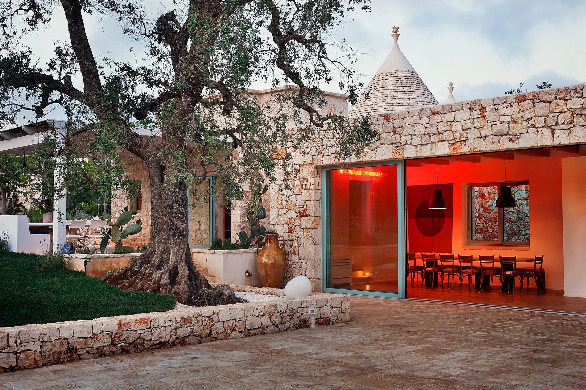 A coleção consiste em três edifícios separados, concebidos como três vilas únicas. O conceito é uni-los através das zonas comuns: a grande cozinha e a sala, a piscina e zonas circundantes, a zona de churrasco com forno a lenha. São todos ambientes acolhedores onde a família e amigos têm a oportunidade de passar umas férias maravilhosas com total privacidade. No total são 7 quartos, bem como uma área para dormir na sala, 2 cozinhas, 3 salas, uma das quais é muito ampla, e diversos espaços exteriores que giram em torno da grande piscina. Mais do que férias: uma experiência inesquecível na Puglia priorizando a privacidade, o convívio, a cultura, a exclusividade.