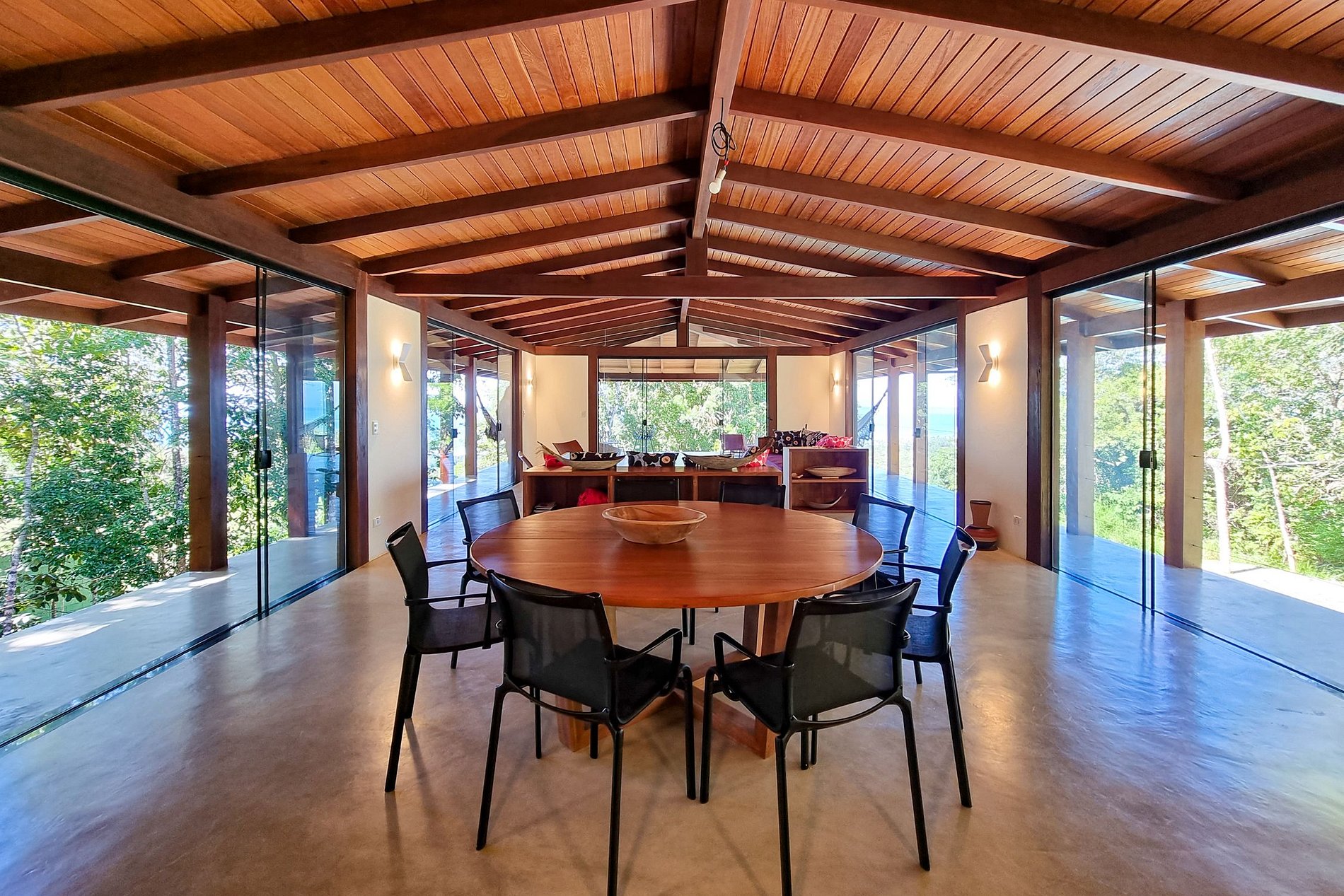 Casa feita com madeira Massaranduba, dando um lindo toque rústico baiano à decoração da mesma. Os móveis foram especialmente desenhados e fabricados com madeira tropical maciça. As luminárias possuem design Italiano para iluminar toda a casa enquanto embeleza os ambientes. Todos os cômodos são muito bem iluminados naturalmente e são cercados de natureza e tranquilidade neste lugar maravilhoso.