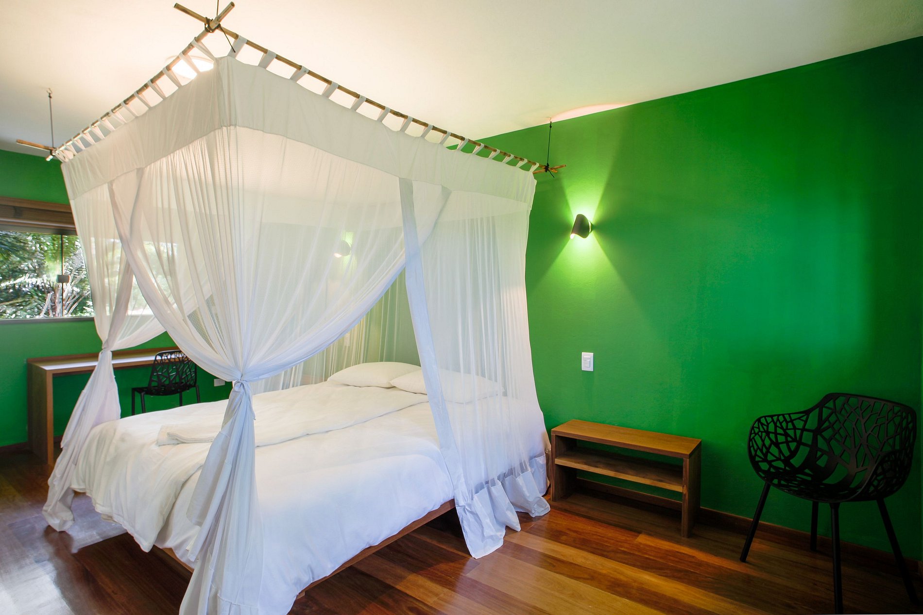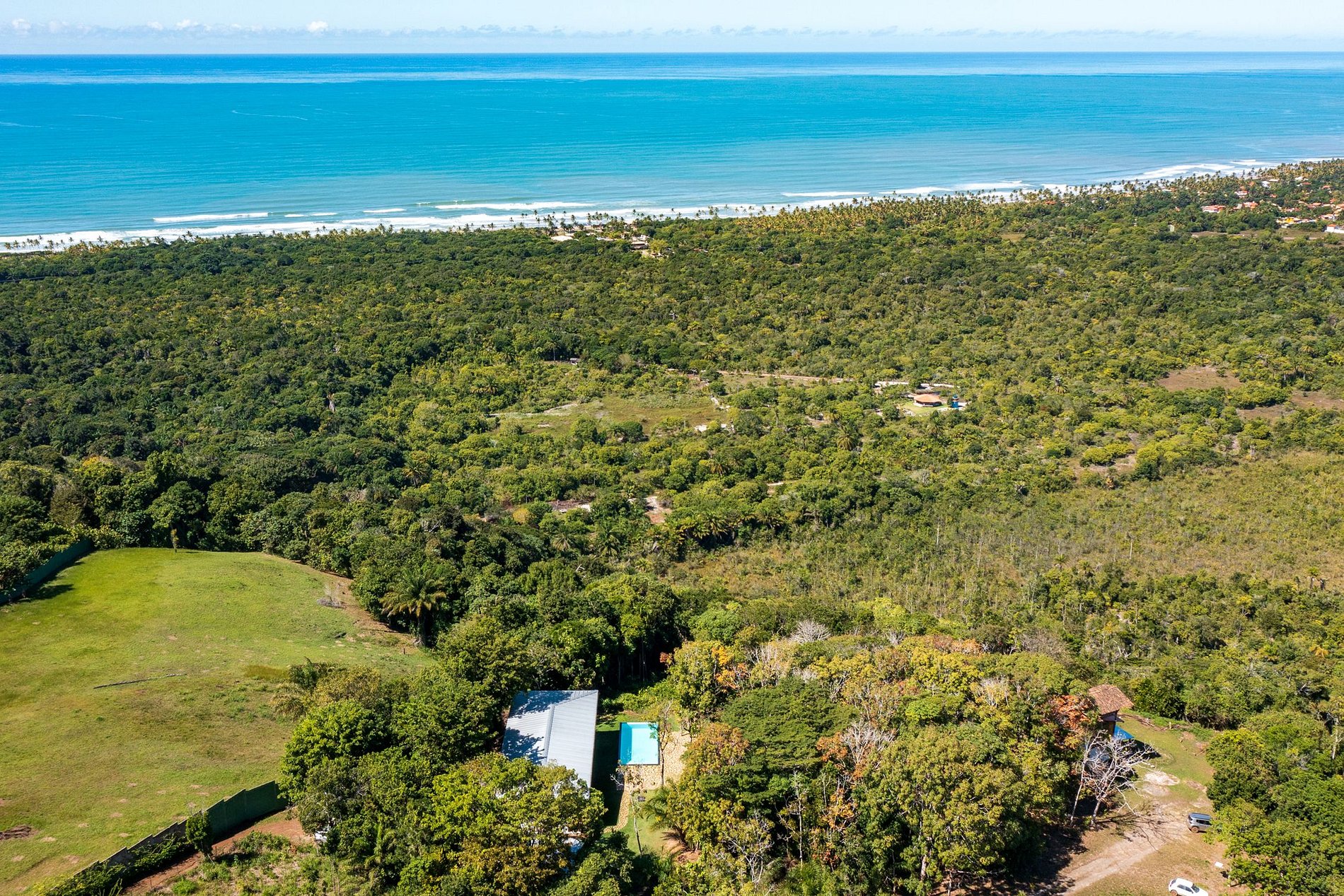 Casa feita com madeira Massaranduba, dando um lindo toque rústico baiano à decoração da mesma. Os móveis foram especialmente desenhados e fabricados com madeira tropical maciça. As luminárias possuem design Italiano para iluminar toda a casa enquanto embeleza os ambientes. Todos os cômodos são muito bem iluminados naturalmente e são cercados de natureza e tranquilidade neste lugar maravilhoso.