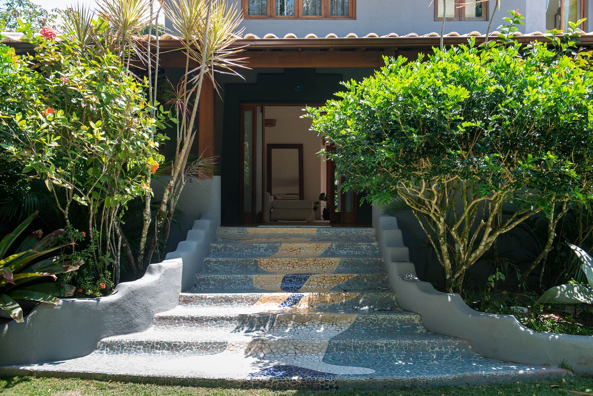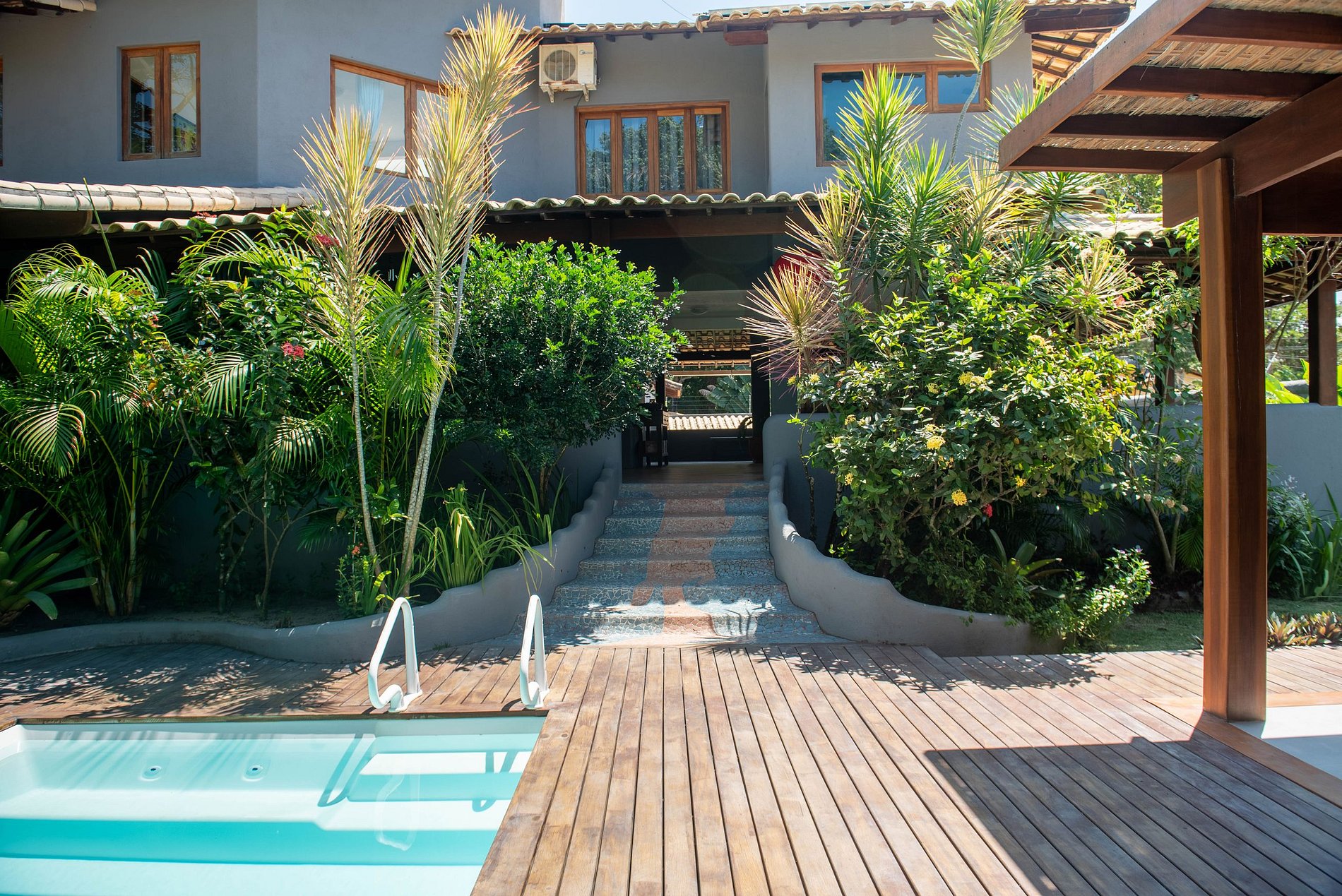 Esta encantadora residência conta com 3 pavimentos, oferecendo 4 suítes espaçosas, todas equipadas com ar-condicionado split e roupas de cama e banho de qualidade. Além disso, você encontrará uma sala de entretenimento, cozinha completa, um elegante bar, lavabo e varandas amplas e arejadas que cercam os jardins, proporcionando espaços para refeições, trabalho e momentos relaxantes.