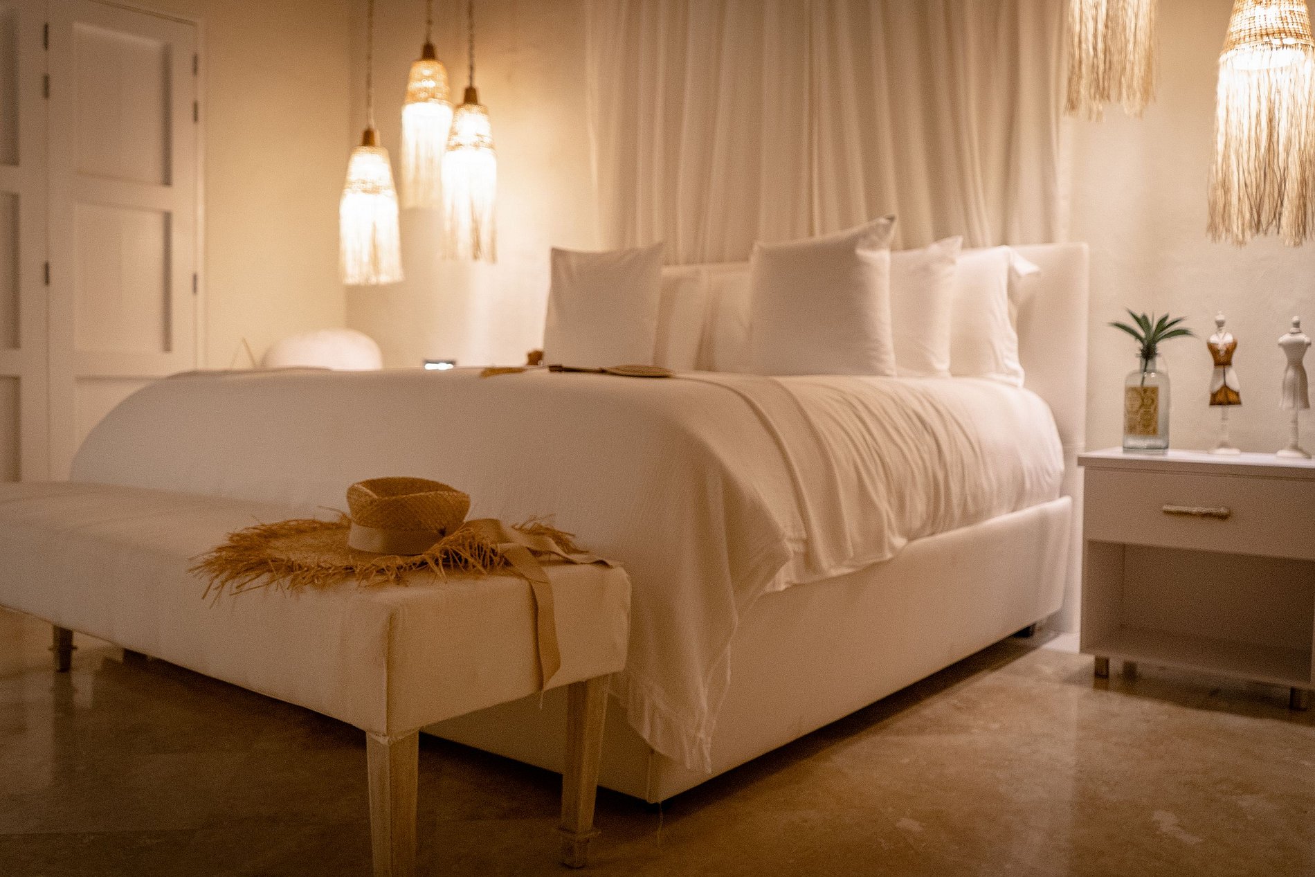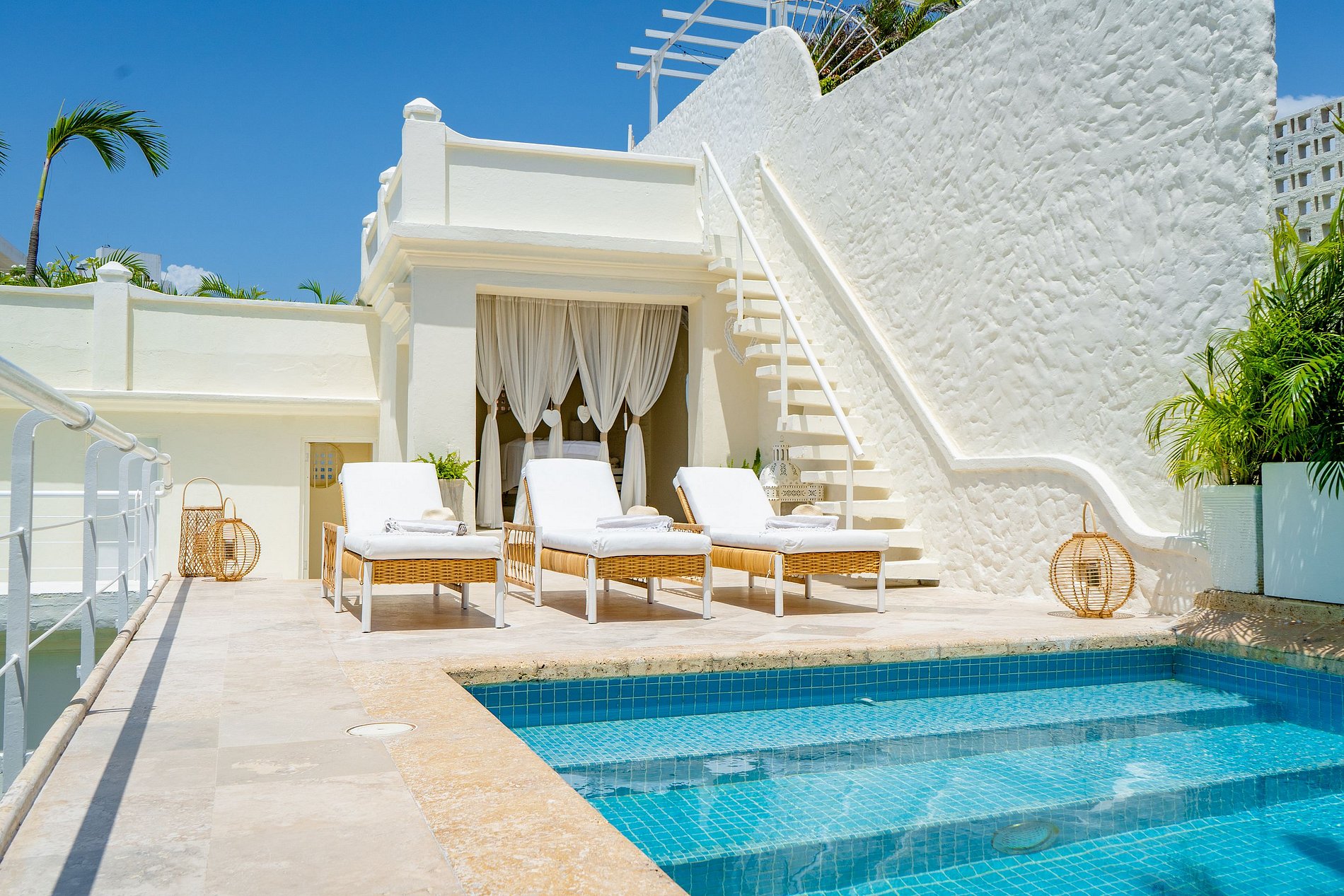 11 quartos distribuídos em 3 espaços separados, cada quarto está totalmente equipado com casa de banho privada, TV ultra HD com ligação à Internet e vista para o espaço interior da casa, a piscina ou para a cidade.