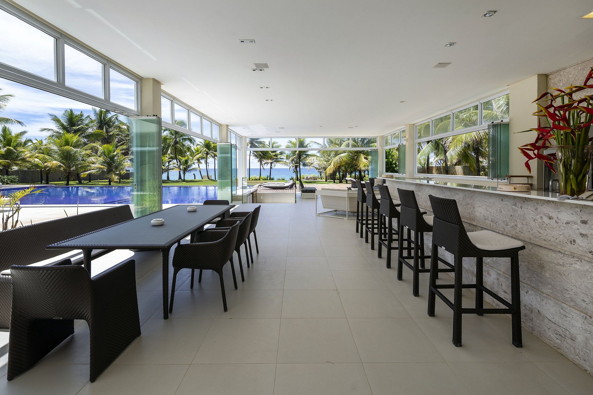 Lindo casarão de arquitetura moderna, no coração de lindo jardim tropical em frente de uma praia paradisíaca, num condomínio de alto padrão com nível elevado de segurança 24h a 9 km de Salvador.