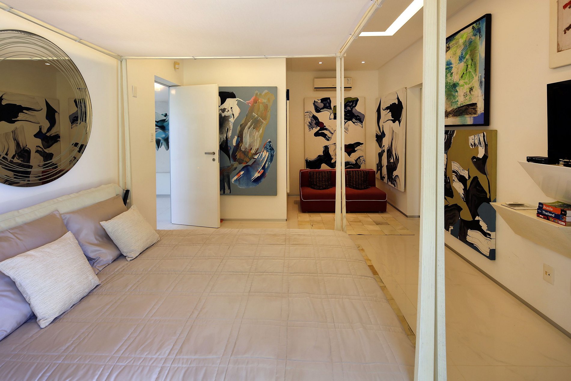 Acesso nas suites via uma sala de TV privativa.