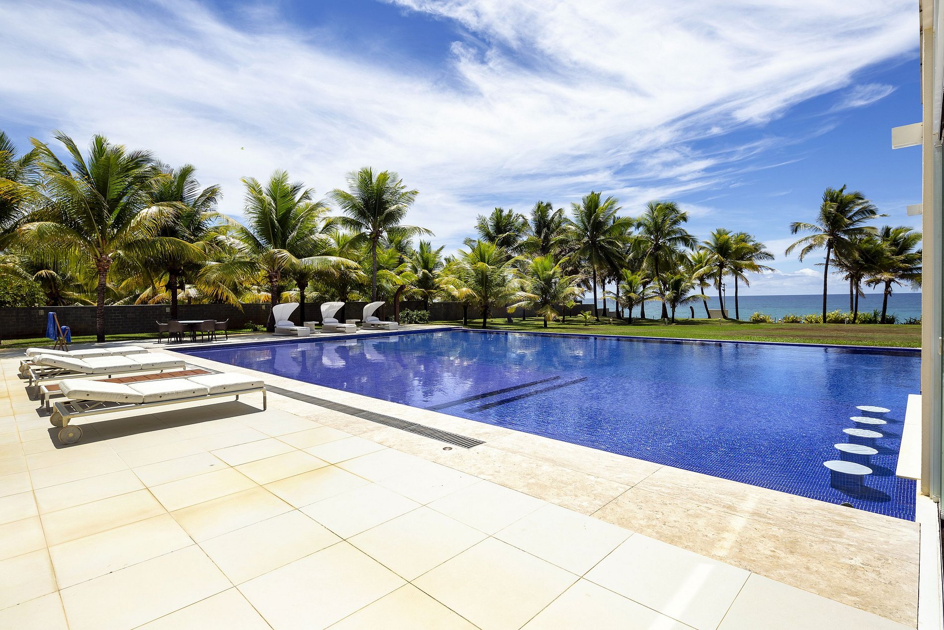Lindo casarão de arquitetura moderna, no coração de lindo jardim tropical em frente de uma praia paradisíaca, num condomínio de alto padrão com nível elevado de segurança 24h a 9 km de Salvador.