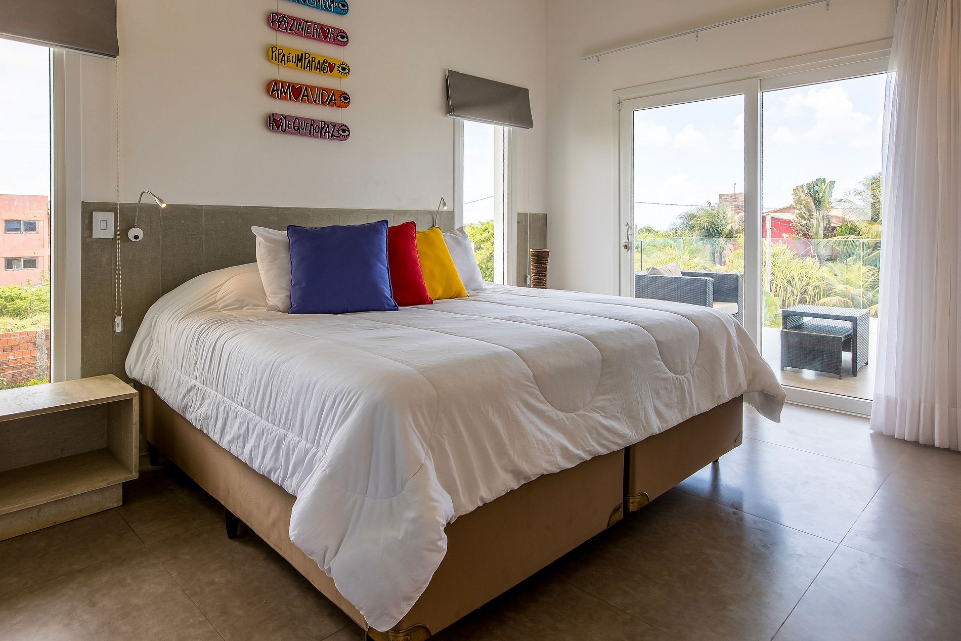 4 suítes decoradas e climatizadas com TV tela plana, cama King, móveis com iluminação indireta de LED, closet com cabides, cabeceira, mesinhas de cabeceira e abajur de leitura, cortinas duplas, mosquiteiros...