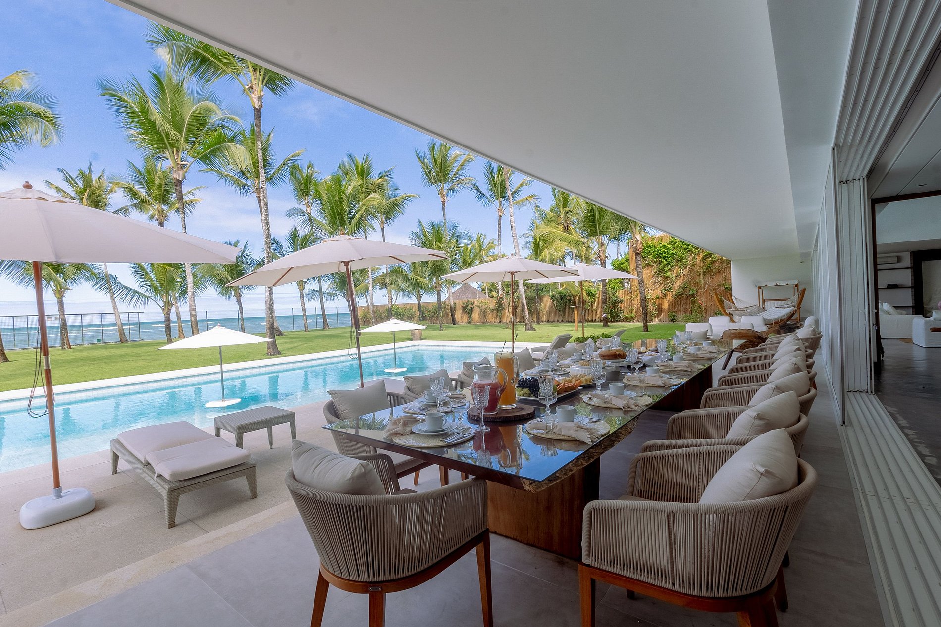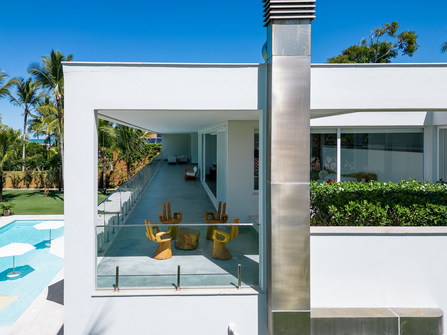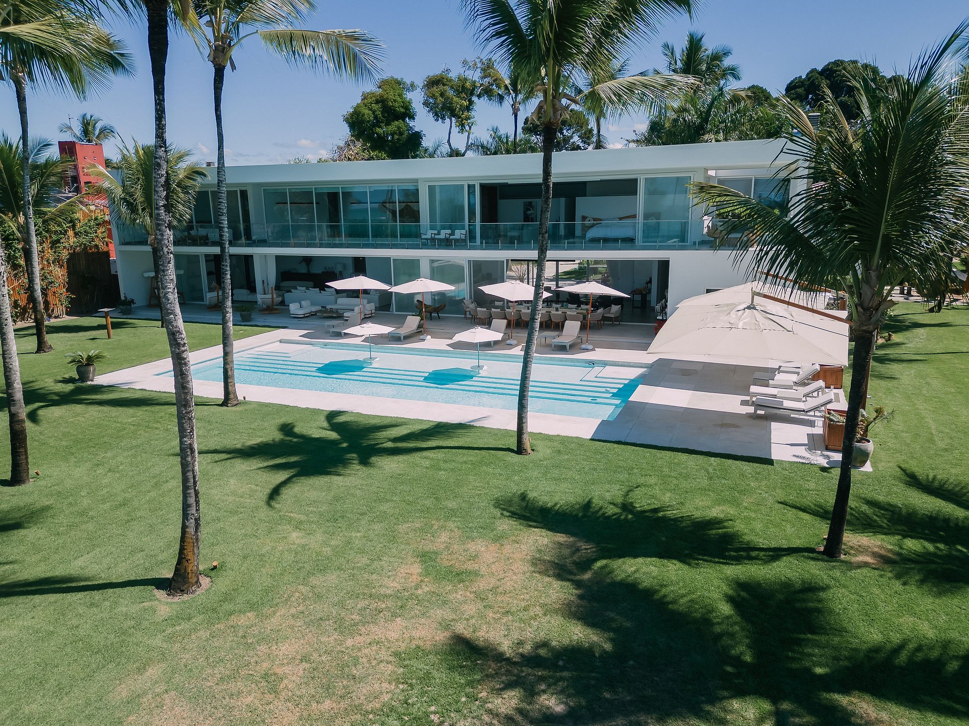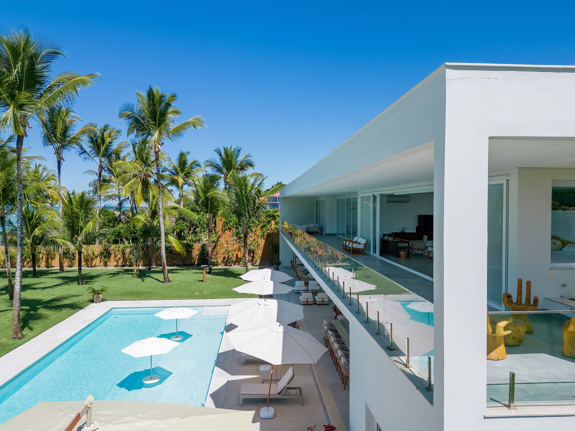 Com arquitetura privilegiada, exuberante e imponente a bela Villa está localizada de frente a praia de Araçaipe em Arraial d´Ajuda. Praia de areia branca, água calma, cristalina, morna, sem correntenza. O verdadeiro paraíso tropical.