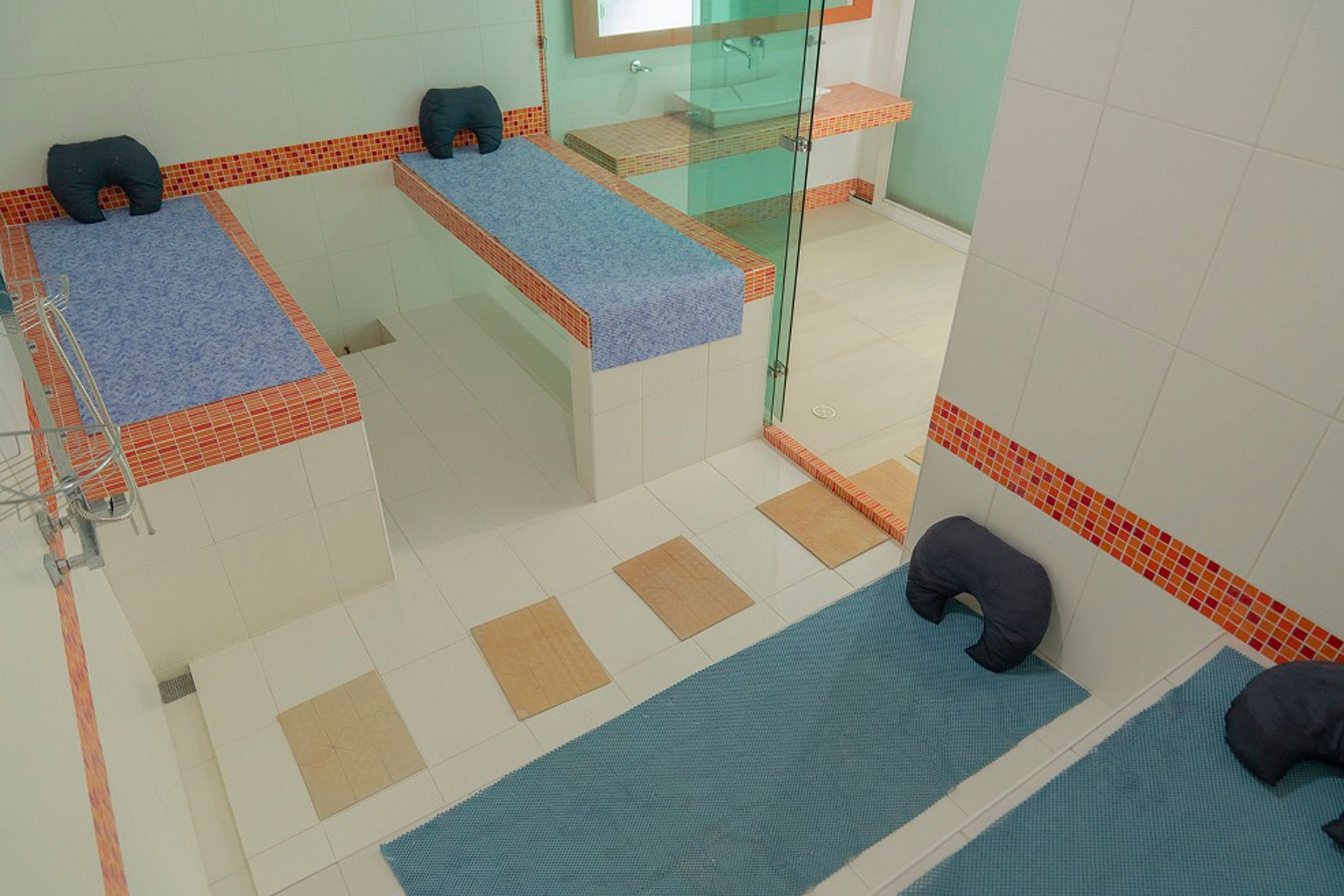 É um local privado e seguro, dotado de móveis e decoração de alto nível; Tem 5 quartos todos com banheiro privativo, sala de TV, sala de jantar principal e auxiliar, piscina, academia, churrasqueira, circuito interno de TV e turco (uma hora por dia), jacuzzi.