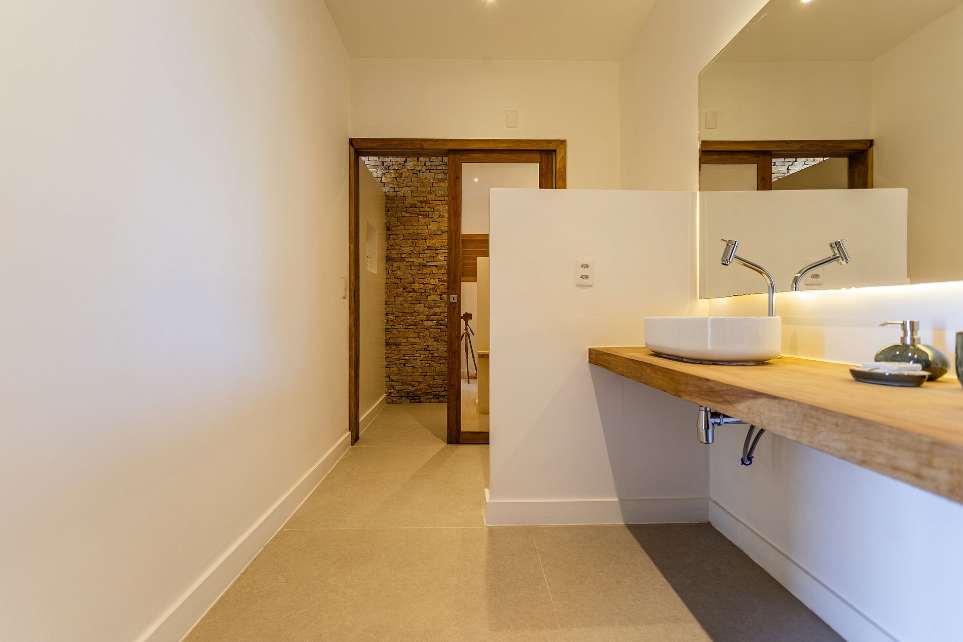 Criada para se integrar totalmente à bela decoração natural que a rodeia, a moradia possui uma cozinha americana, uma grande piscina cor de jade e 5 confortáveis suites.