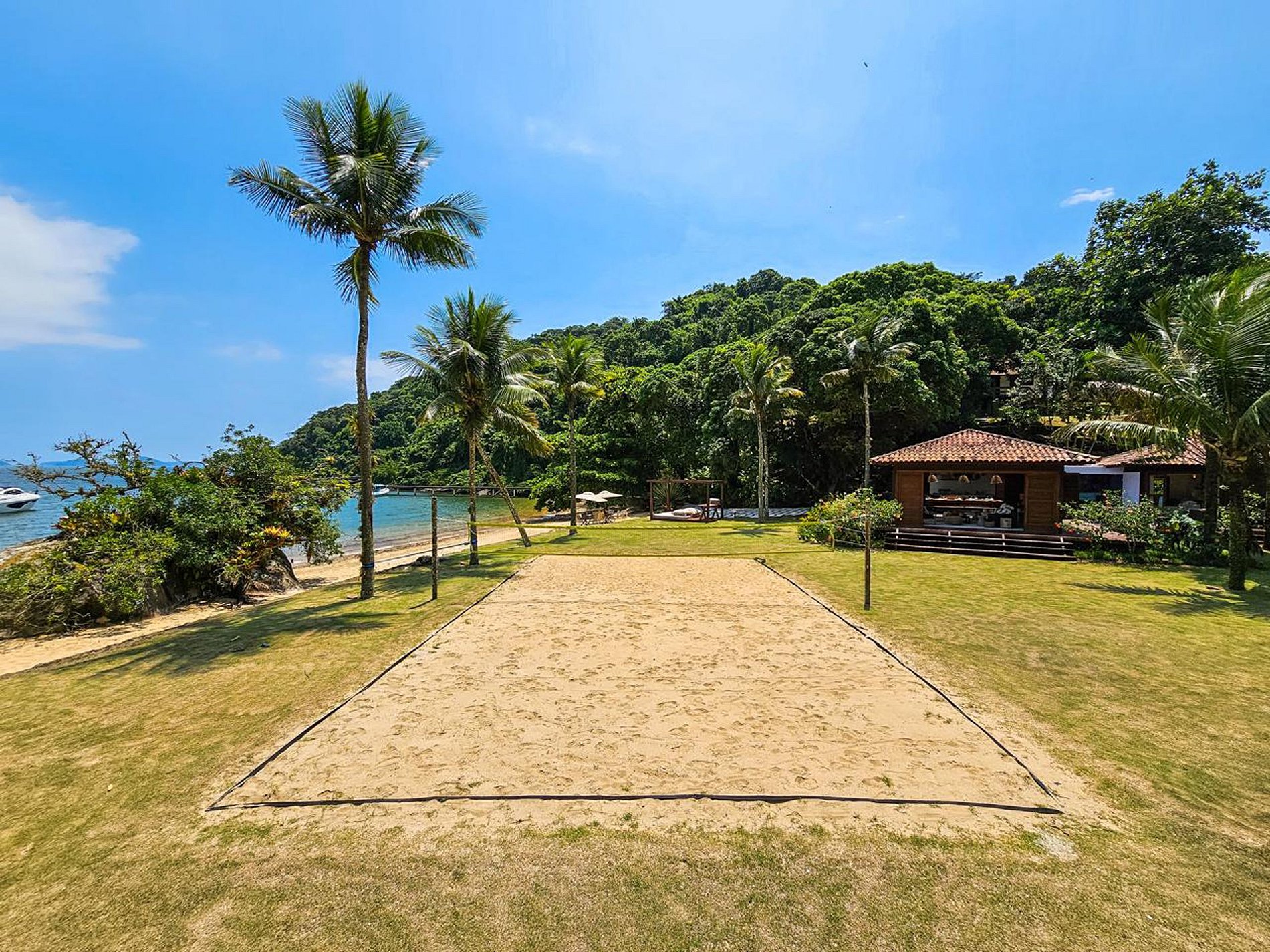 Próximo a praia, há um bangalô com bar para preparo de bebidas, local para refeições e sistema de som embutido, propício para ambientar e animar os momentos na praia. Na área próxima ao bangalô está uma área para prática de esportes como quadra de vôlei de praia, quadra de tênis, pula pula inflável na praia, piscina e sauna.