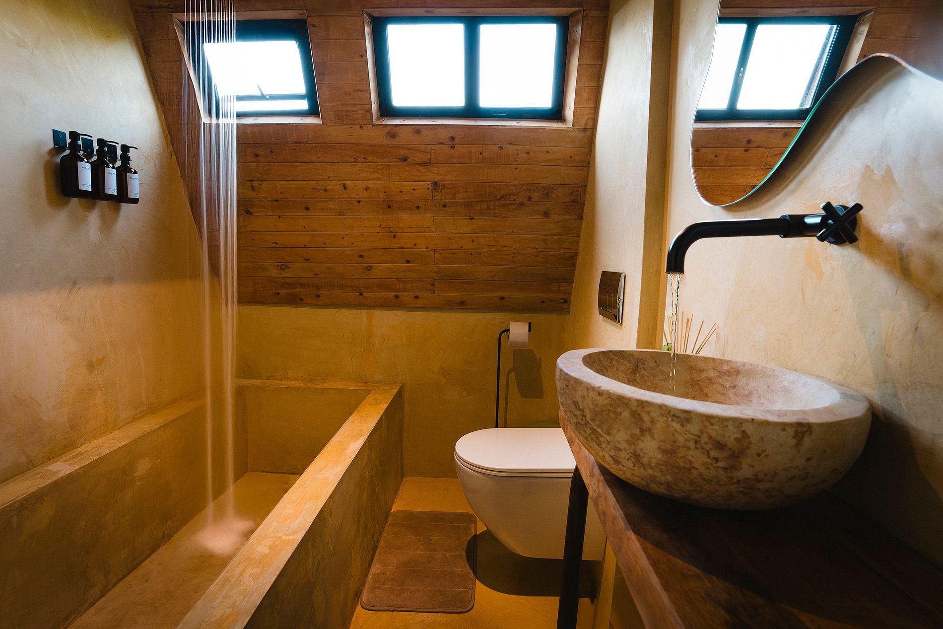 No interior, você encontrará um design orgânico, limpo e moderno que incorpora o estilo Japandi—uma mistura harmoniosa da simplicidade japonesa e da funcionalidade escandinava. Com um teto de vidro que inunda o espaço com luz natural, você pode observar as estrelas do conforto da sua sala de estar ou aconchegar-se em frente à lareira de lenha enquanto joga xadrez.
