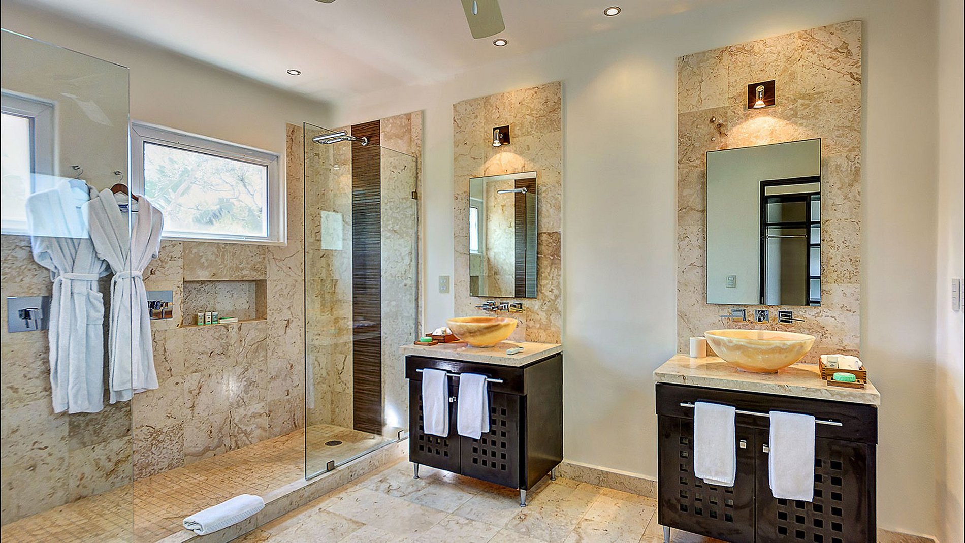Os quartos têm um design minimalista e oferecem uma sensação de organização, frescor e muito espaço. Os banheiros são todos equipados com chuveiros no estilo italiano, que oferecem aos hóspedes um toque de elegância durante o banho. O ônix natural confere às pias do banheiro um visual único e luxuoso. Cada quarto tem seu próprio banheiro privativo, e três dos quartos oferecem TV de tela plana. O quarto principal possui ainda um grande closet.