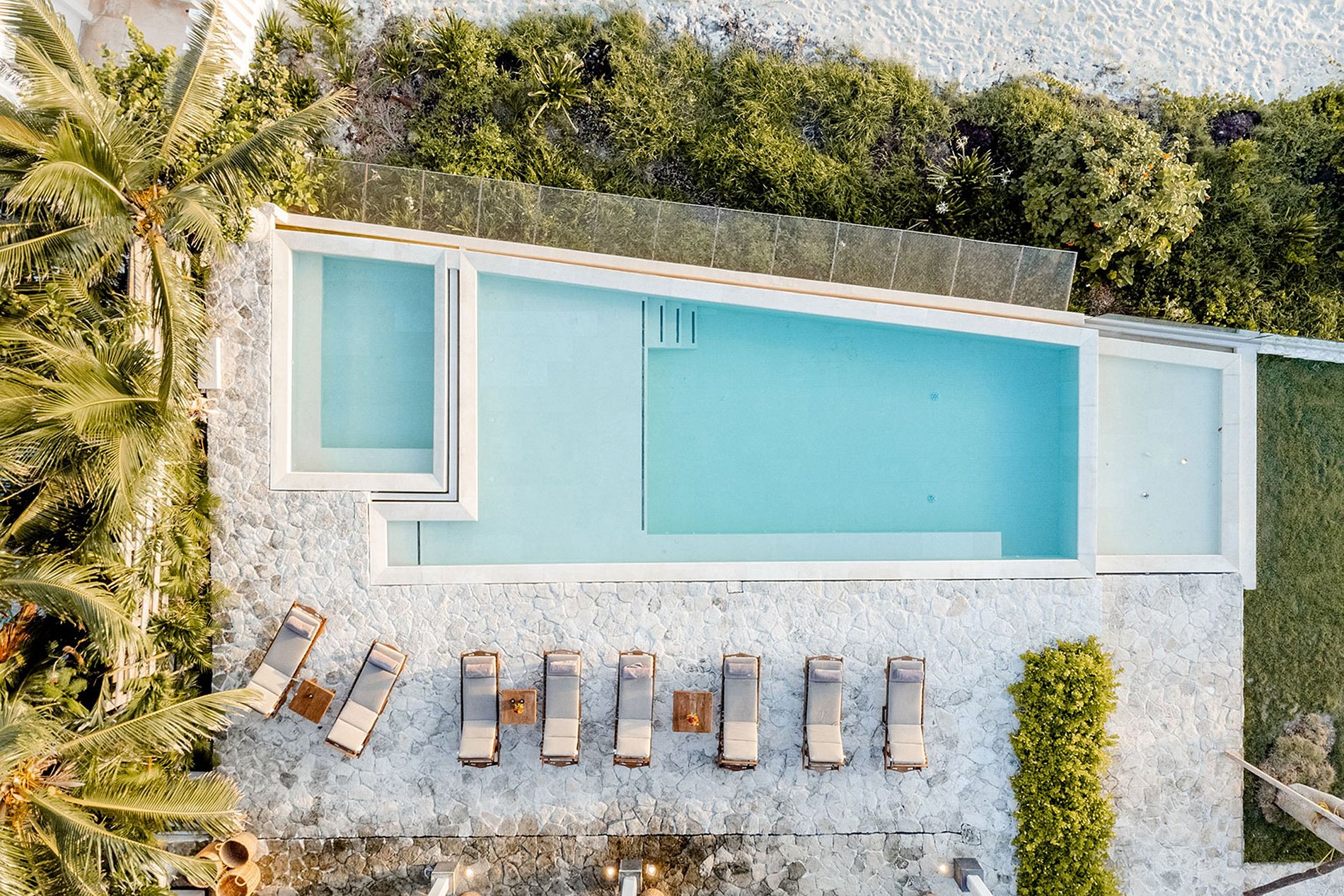 Se você procura privacidade ou grandeza, esta vila oferece diversas acomodações. Experimente o máximo luxo em nossos quartos king, completos com varandas de frente para o mar, ou opte pelos quartos duplos maiores que acomodam confortavelmente até seis pessoas. Cada quarto incorpora uma estética minimalista, ao mesmo tempo em que oferece cama extra prática. A casa principal possui seis quartos, enquanto o sétimo oferece acesso privado à praia e um oitavo bangalô completa o conjunto.