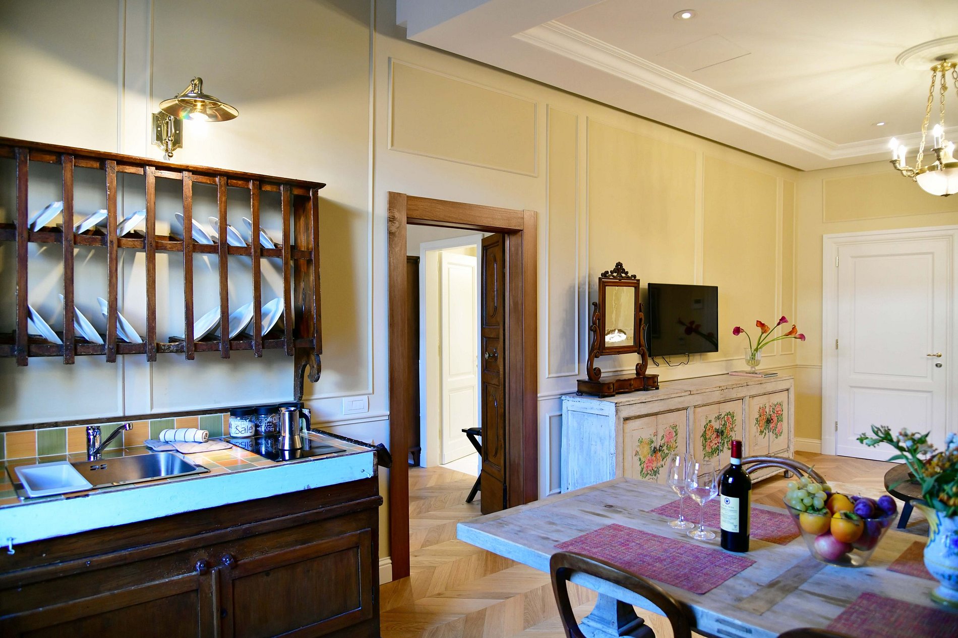 Este luxuoso apartamento de 70 metros quadrados, em um edifício elegante na área central de Florença, está decorado em um estilo tradicional e requintado, possui 2 quartos, cada um com banheiro em mármore. Além disso, uma cozinha totalmente equipada e uma sala de estar com sofá-cama duplo.