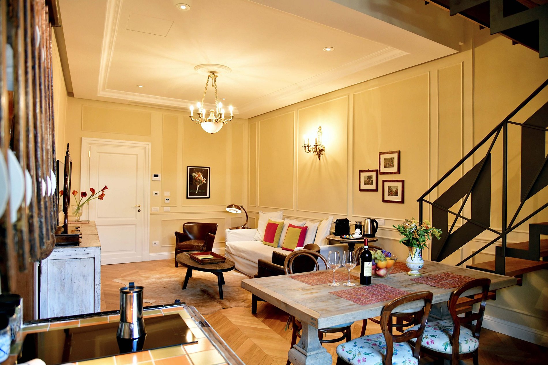 Este luxuoso apartamento de 70 metros quadrados, em um edifício elegante na área central de Florença, está decorado em um estilo tradicional e requintado, possui 2 quartos, cada um com banheiro em mármore. Além disso, uma cozinha totalmente equipada e uma sala de estar com sofá-cama duplo.