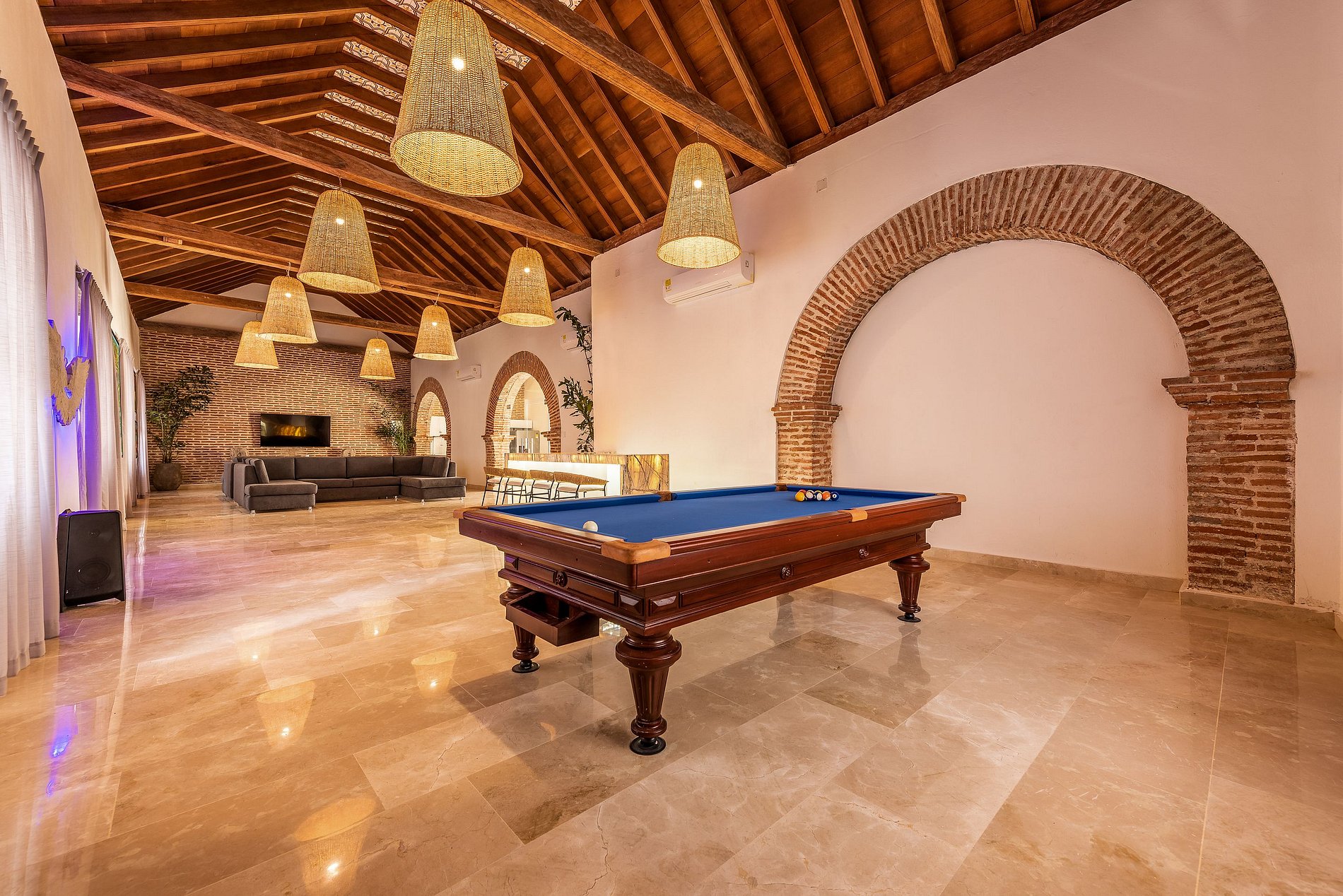 Esta esplêndida propriedade está localizada no centro histórico, uma das melhores áreas de Cartagena. Esta vila renovada tem uma piscina maravilhosa, 11 quartos, uma ampla sala de estar, uma elegante sala de jantar de madeira e também uma mesa de bilhar.