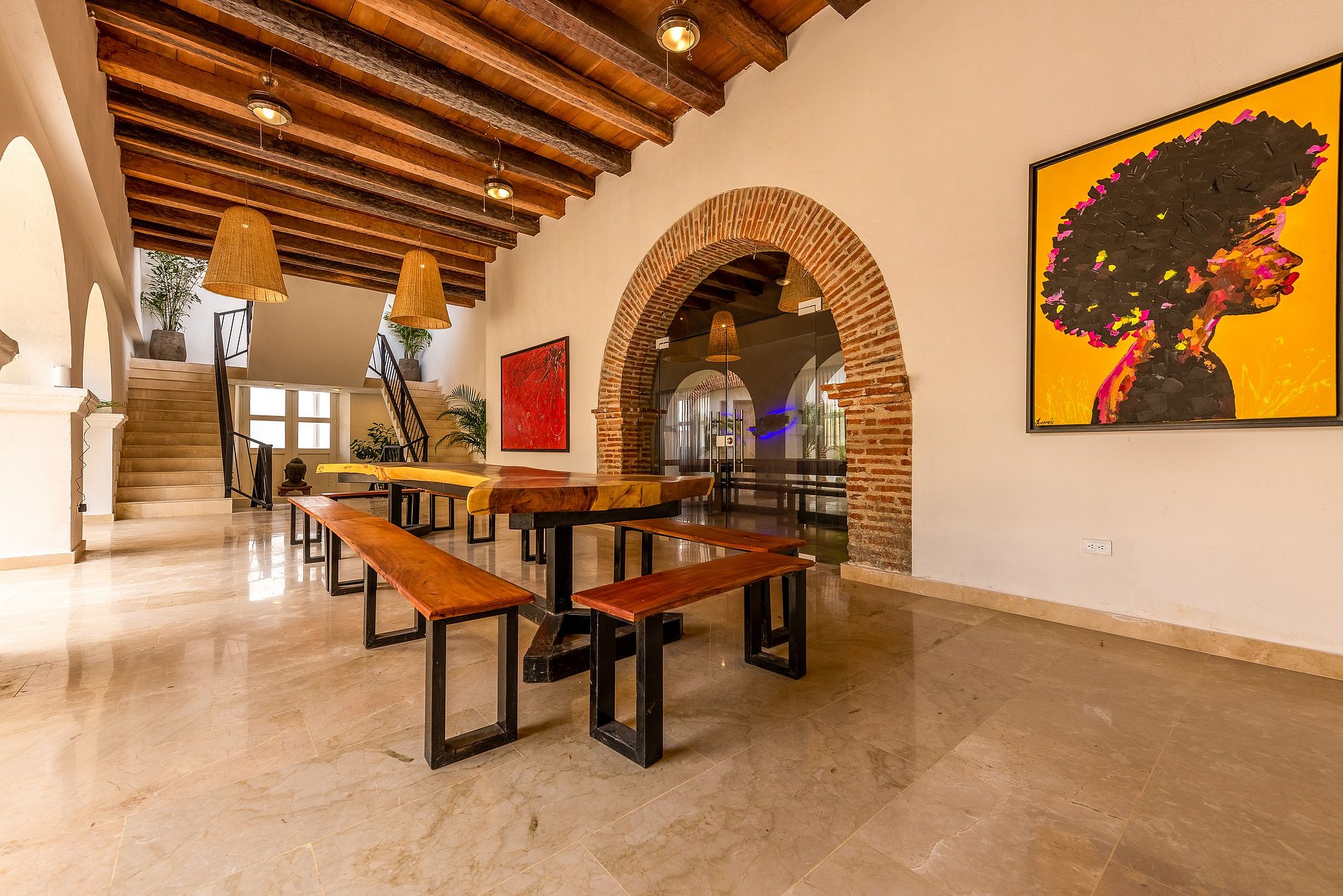 Esta esplêndida propriedade está localizada no centro histórico, uma das melhores áreas de Cartagena. Esta vila renovada tem uma piscina maravilhosa, 11 quartos, uma ampla sala de estar, uma elegante sala de jantar de madeira e também uma mesa de bilhar.