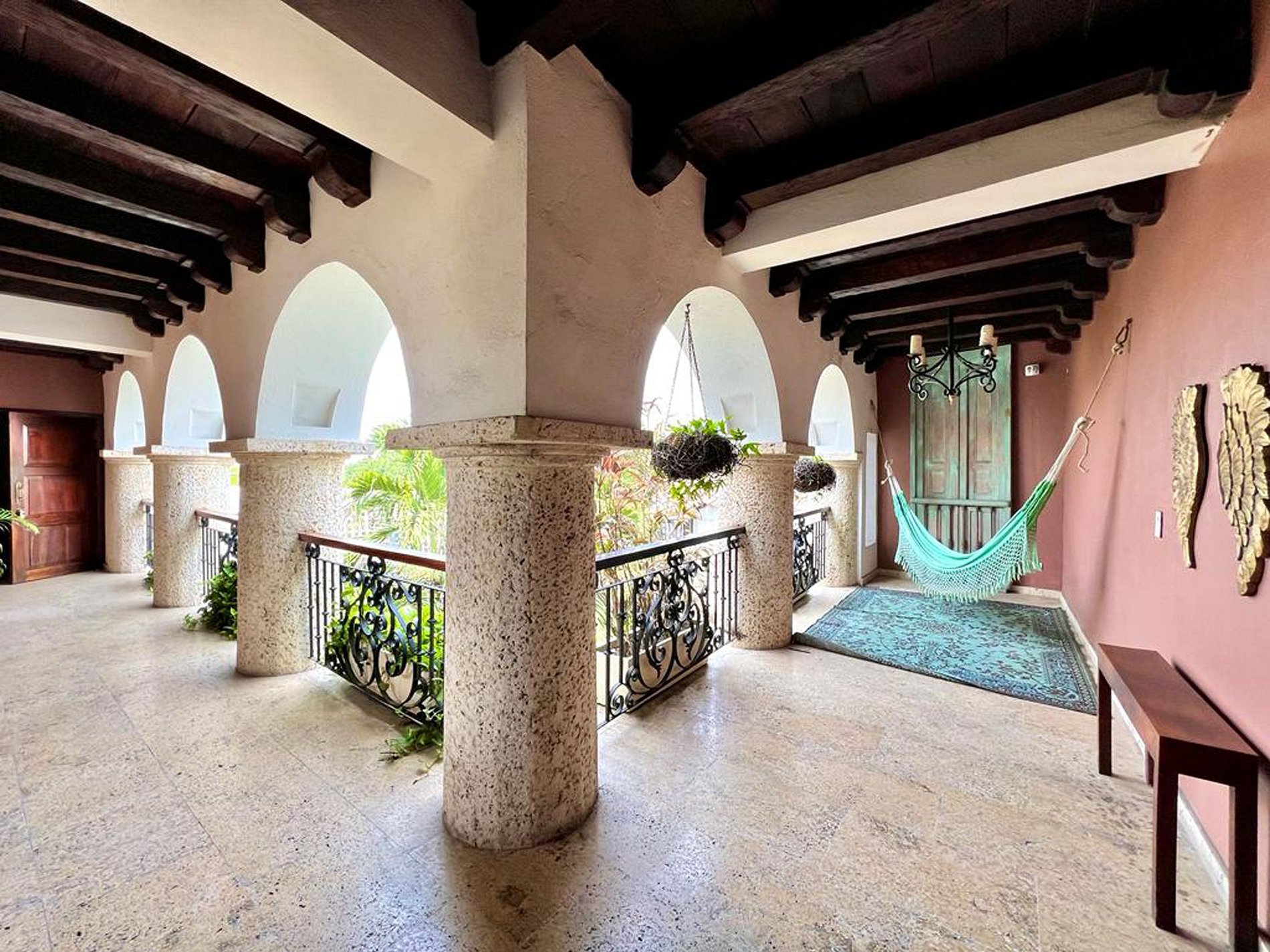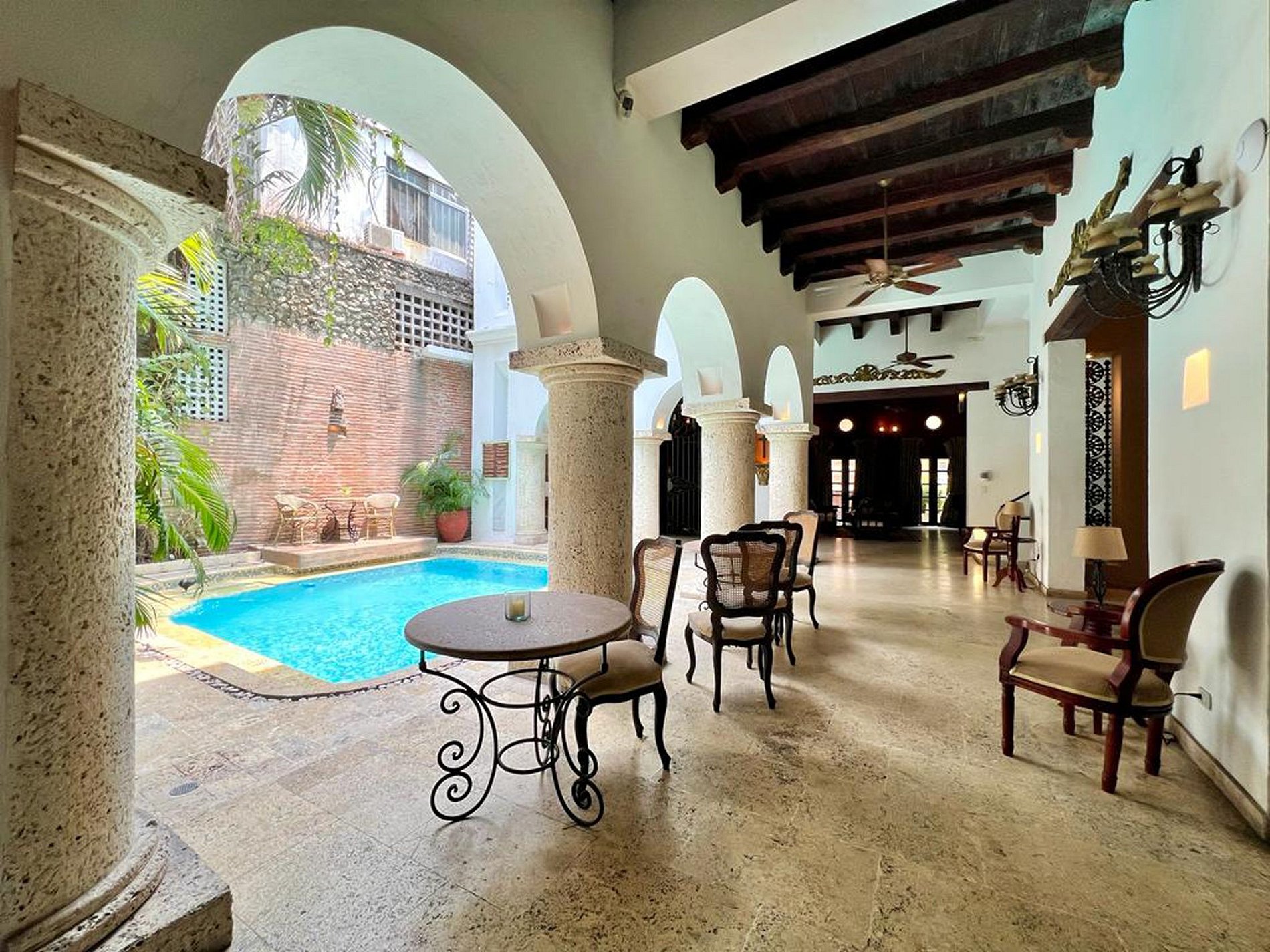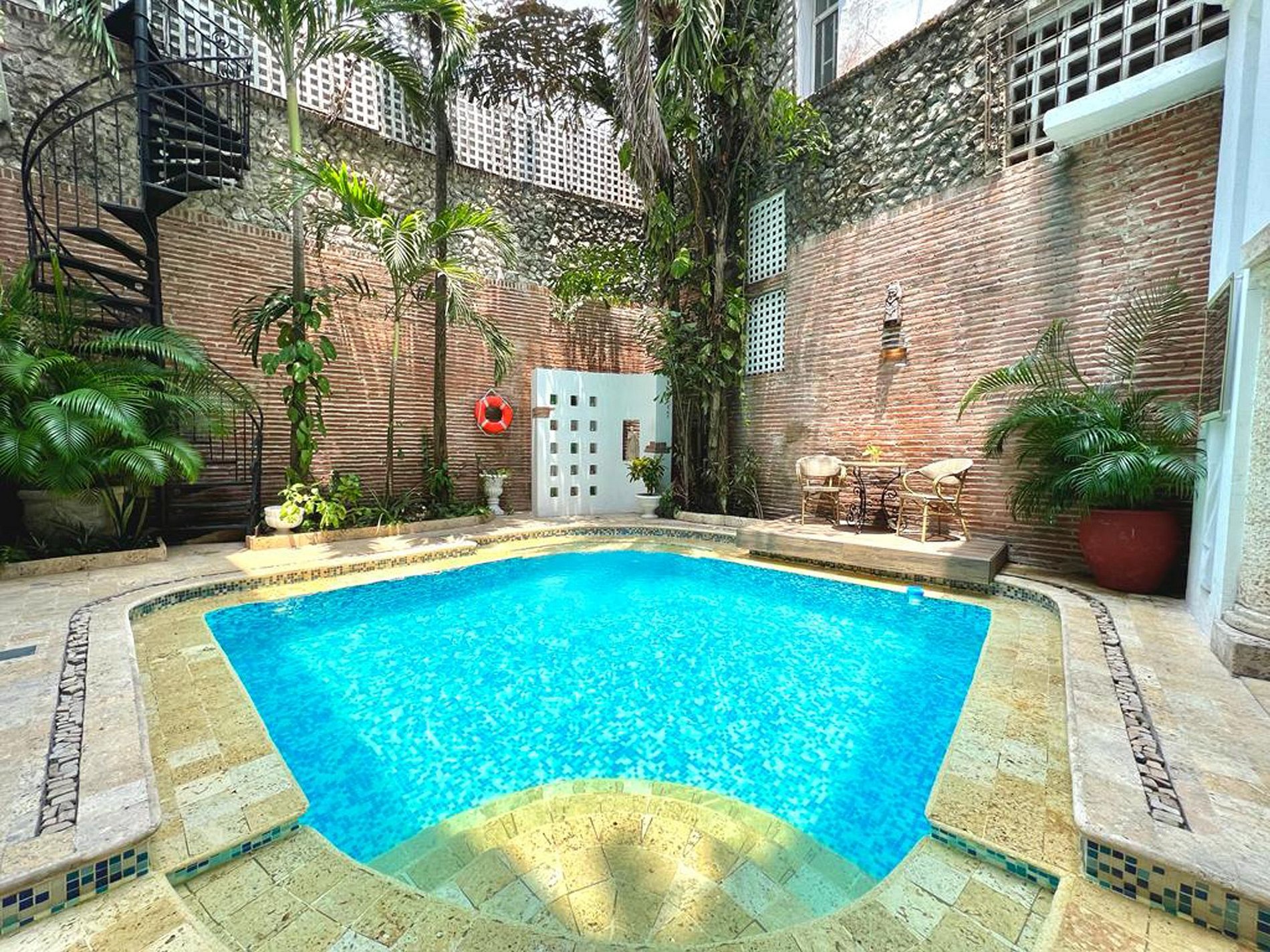 Esta luxuosa propriedade reúne o melhor de dois mundos, a elegância da Cartagena colonial e o conforto da modernidade, com 8 quartos espaçosos com banheiro privativo e ar condicionado, todos com camas king size e detalhes decorativos que preservam a identidade da casa. Este é um espaço ideal para grupos de casais, amigos ou famílias.