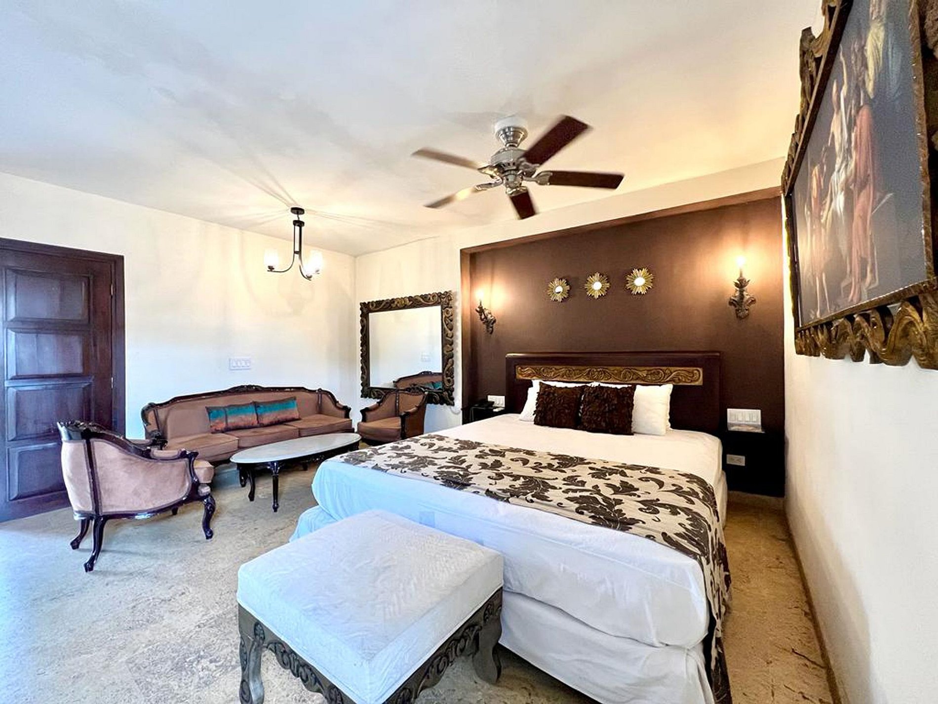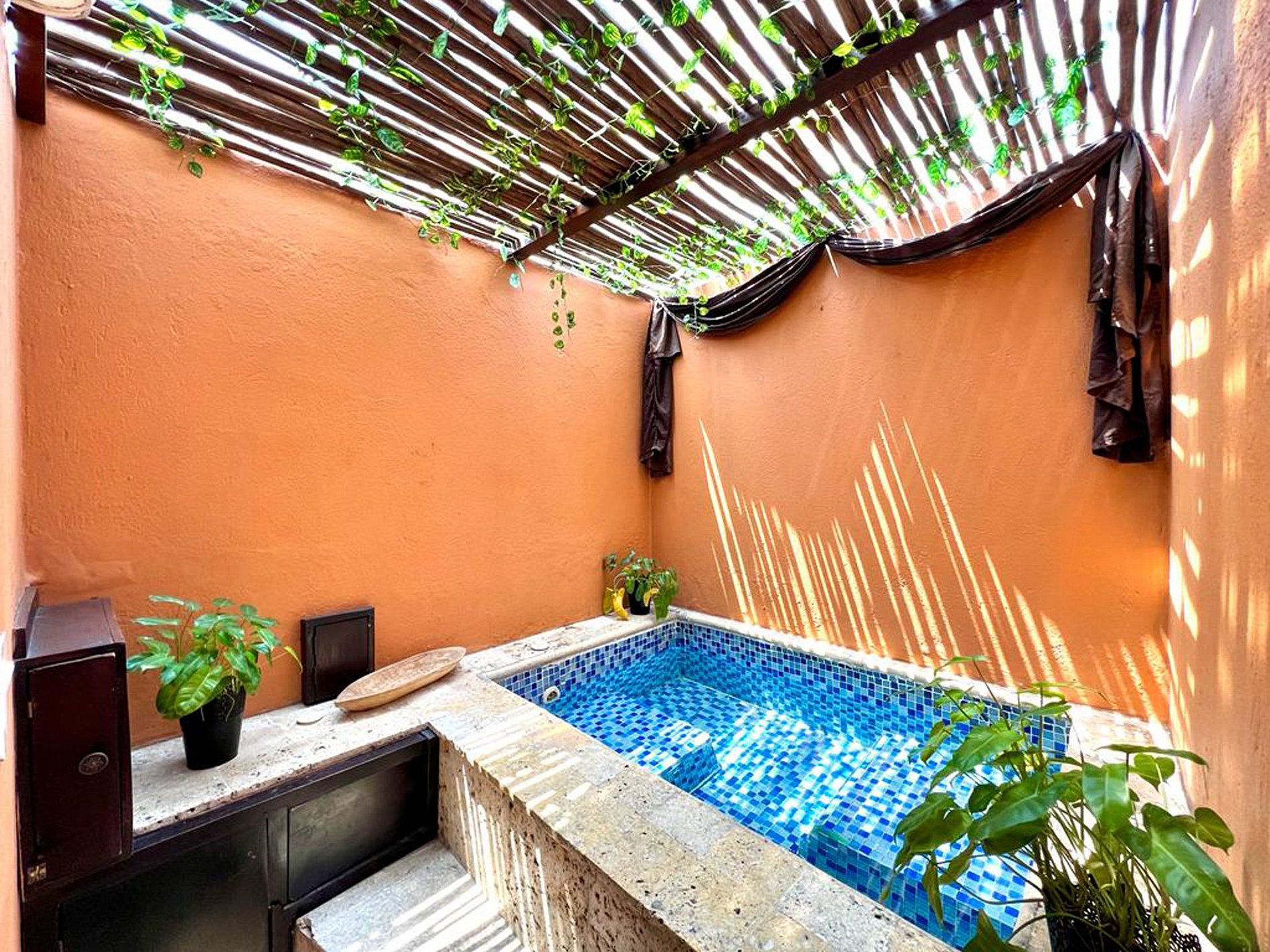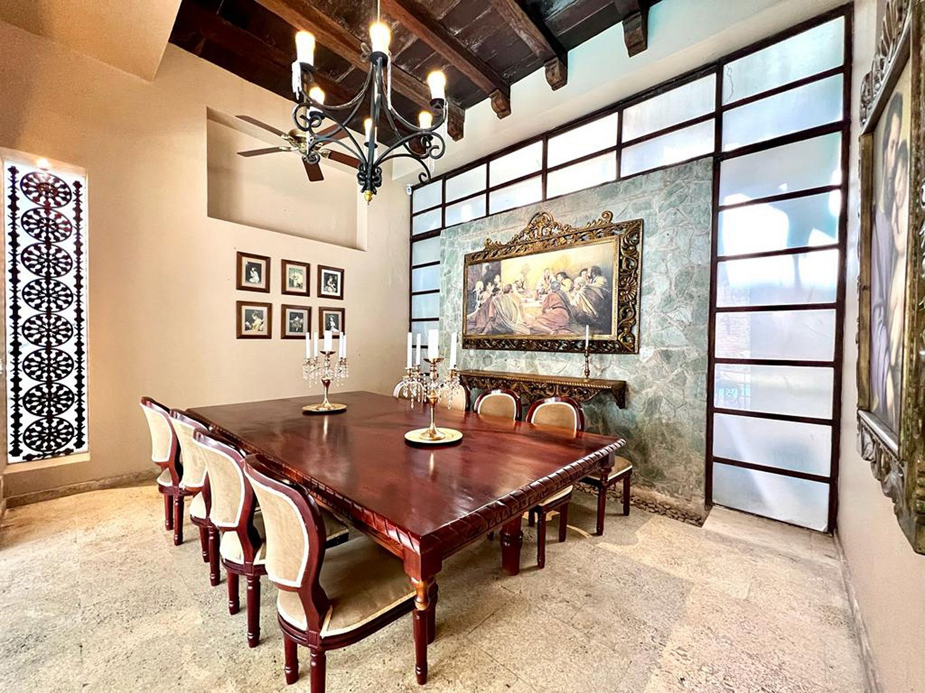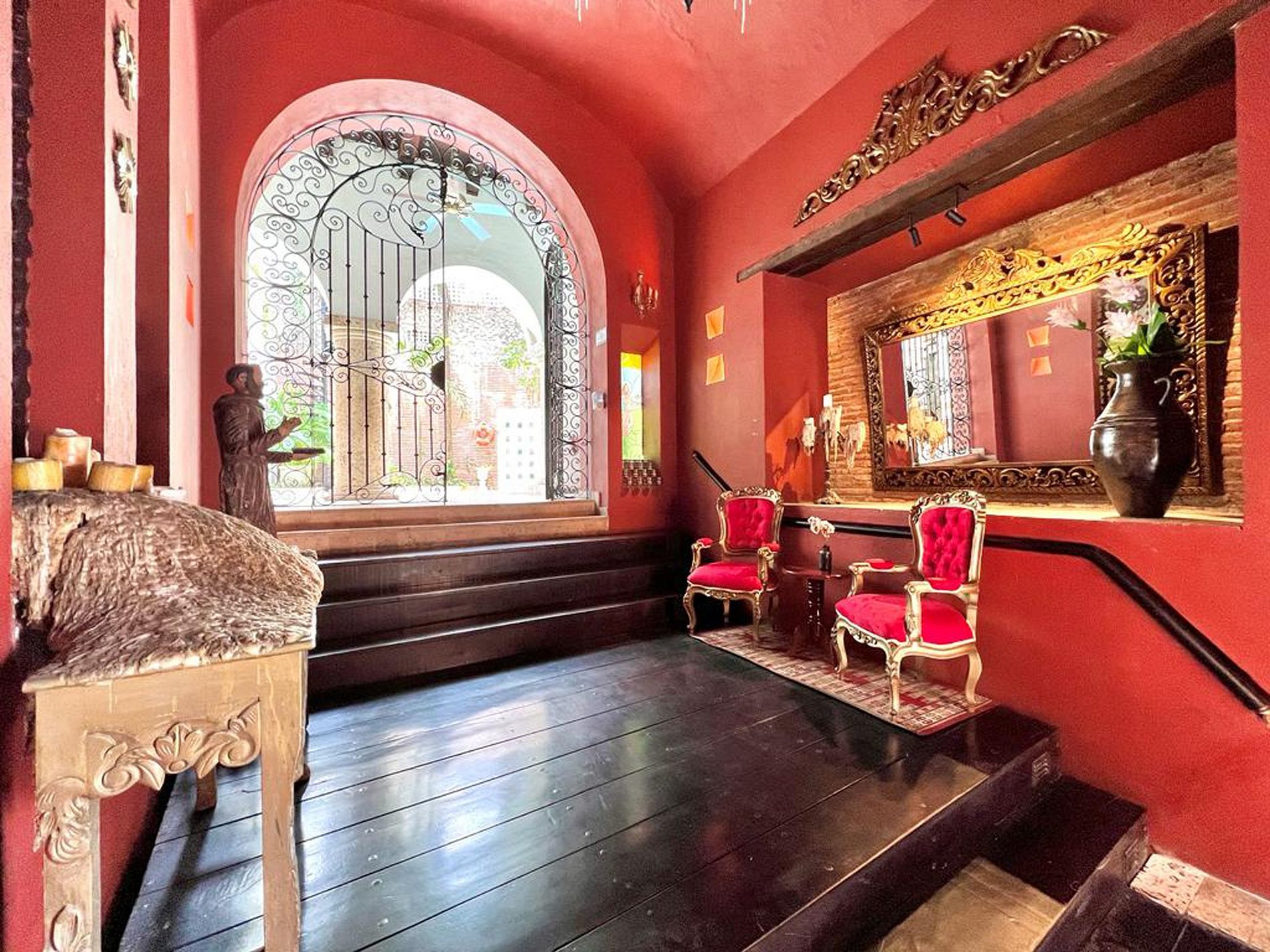 Esta luxuosa propriedade reúne o melhor de dois mundos, a elegância da Cartagena colonial e o conforto da modernidade, com 8 quartos espaçosos com banheiro privativo e ar condicionado, todos com camas king size e detalhes decorativos que preservam a identidade da casa. Este é um espaço ideal para grupos de casais, amigos ou famílias.