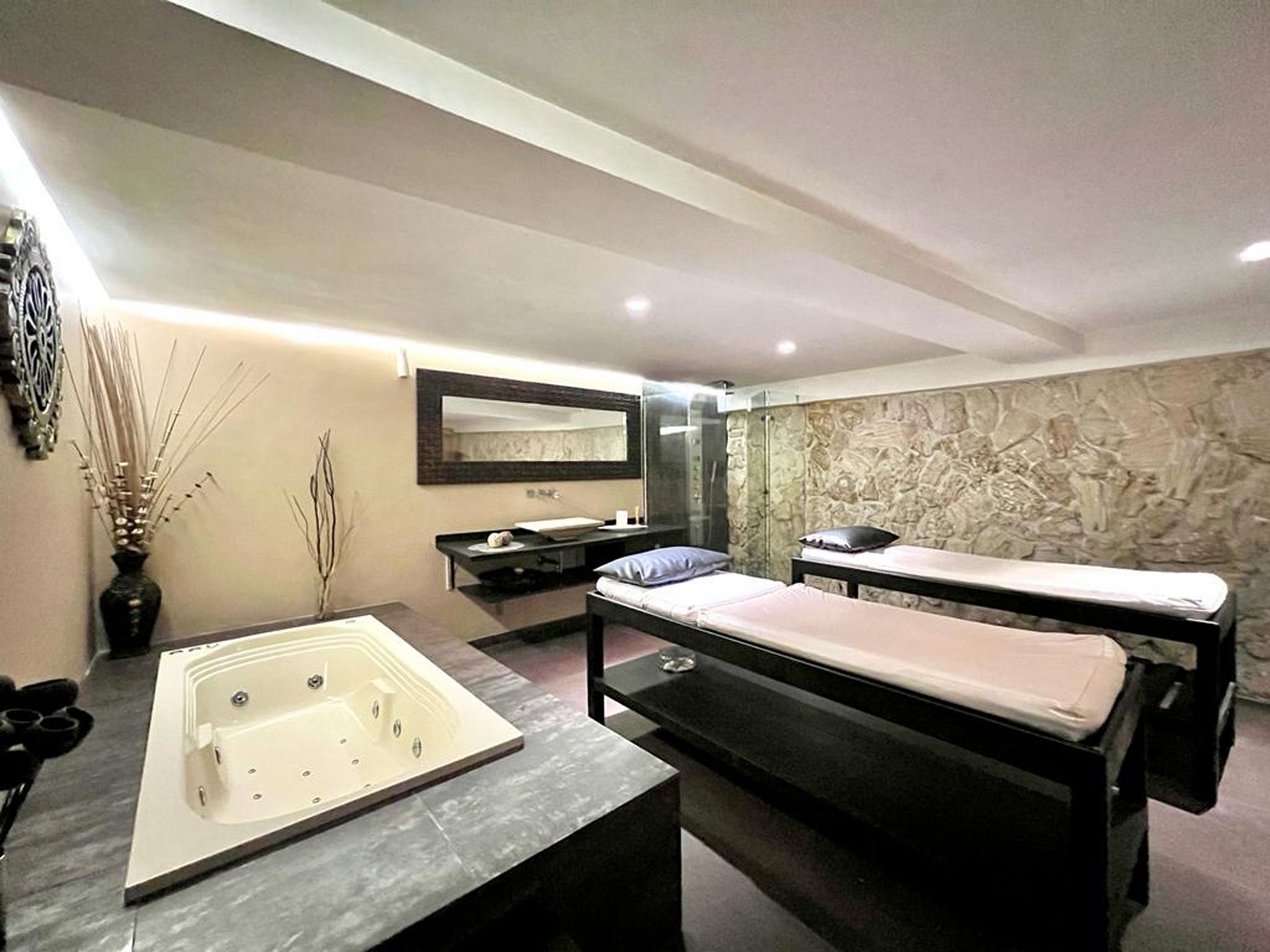 Entre os espaços sociais encontra-se uma cozinha moderna e totalmente equipada, uma sala de jantar e uma varanda com vista para a piscina onde pode desfrutar da brisa da tarde. relaxado em uma rede. Sua bela piscina no pátio central, rodeada de plantas e com cadeiras dispostas para grupos se refrescarem. A casa conta ainda com um espaço spa com jacuzzi para até 4 pessoas e mesas de massagem.