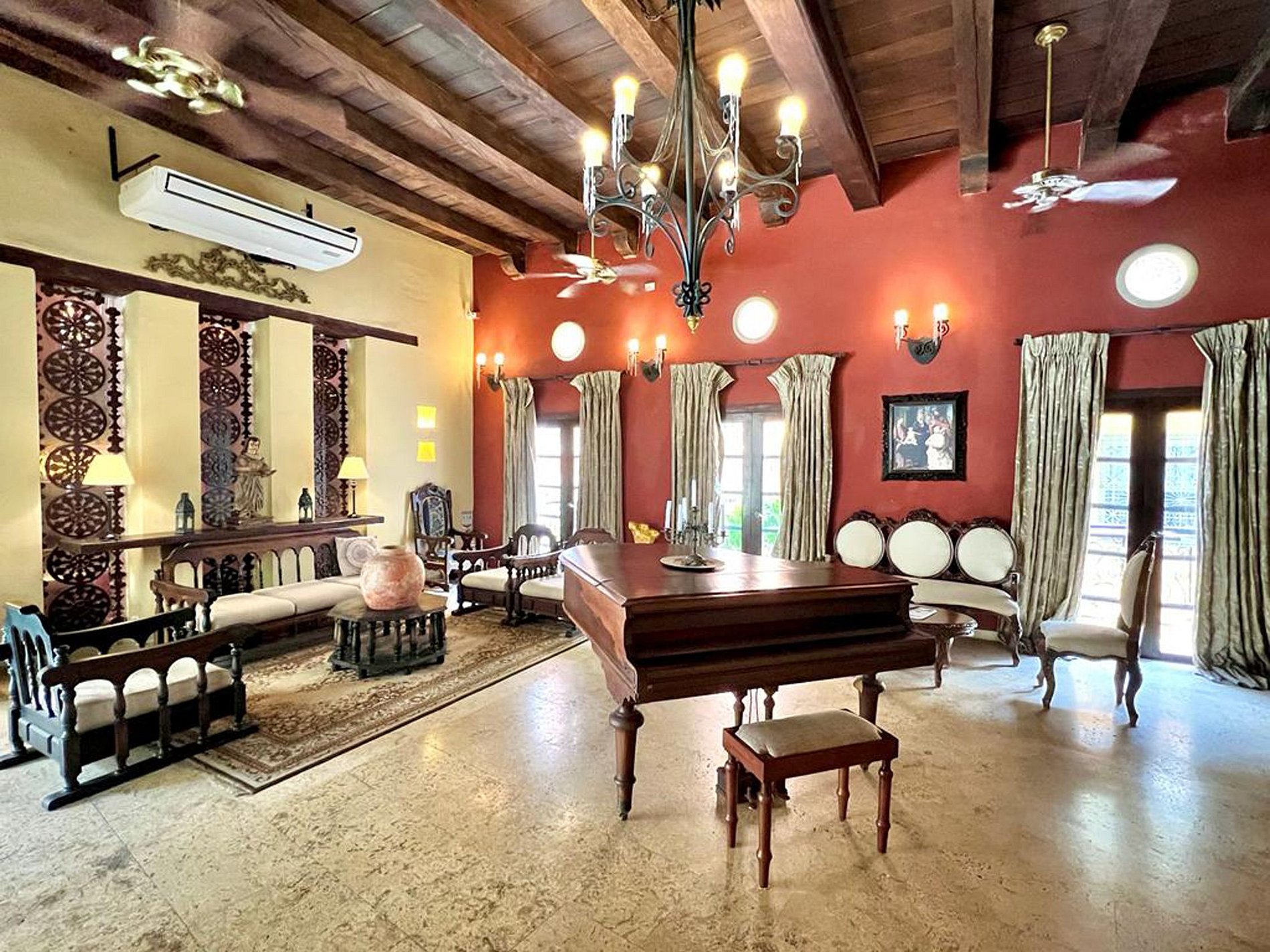 Esta luxuosa propriedade reúne o melhor de dois mundos, a elegância da Cartagena colonial e o conforto da modernidade, com 8 quartos espaçosos com banheiro privativo e ar condicionado, todos com camas king size e detalhes decorativos que preservam a identidade da casa. Este é um espaço ideal para grupos de casais, amigos ou famílias.