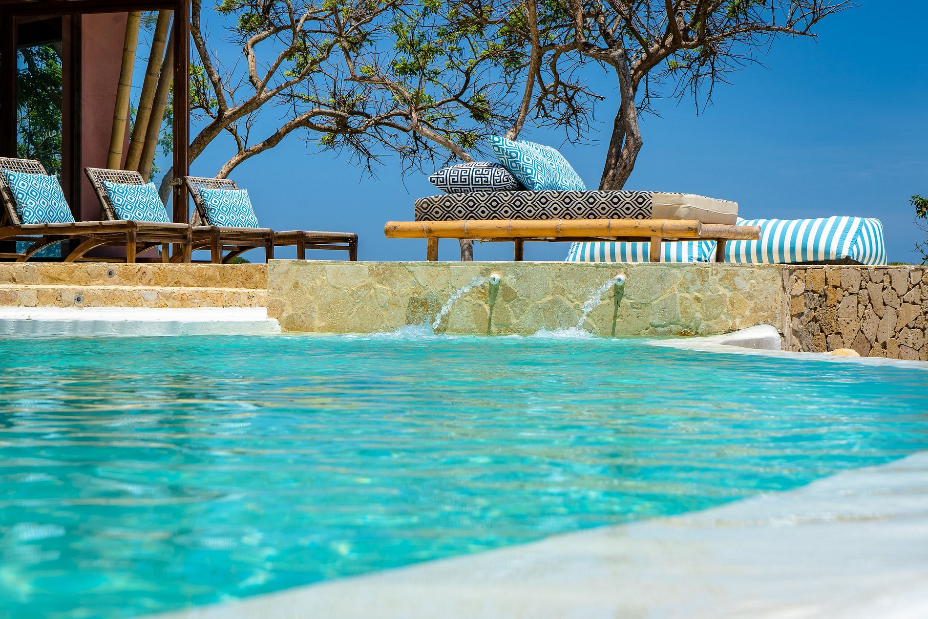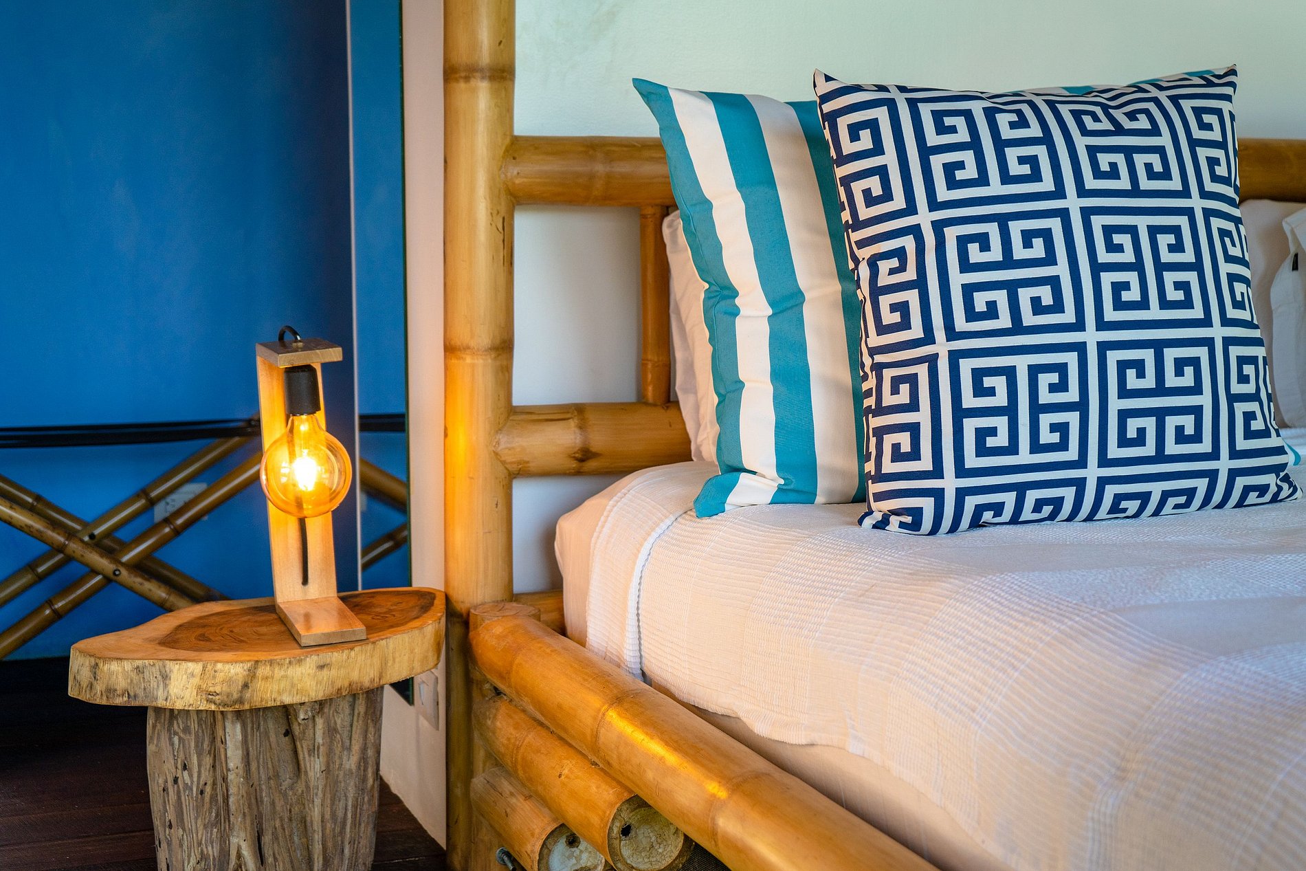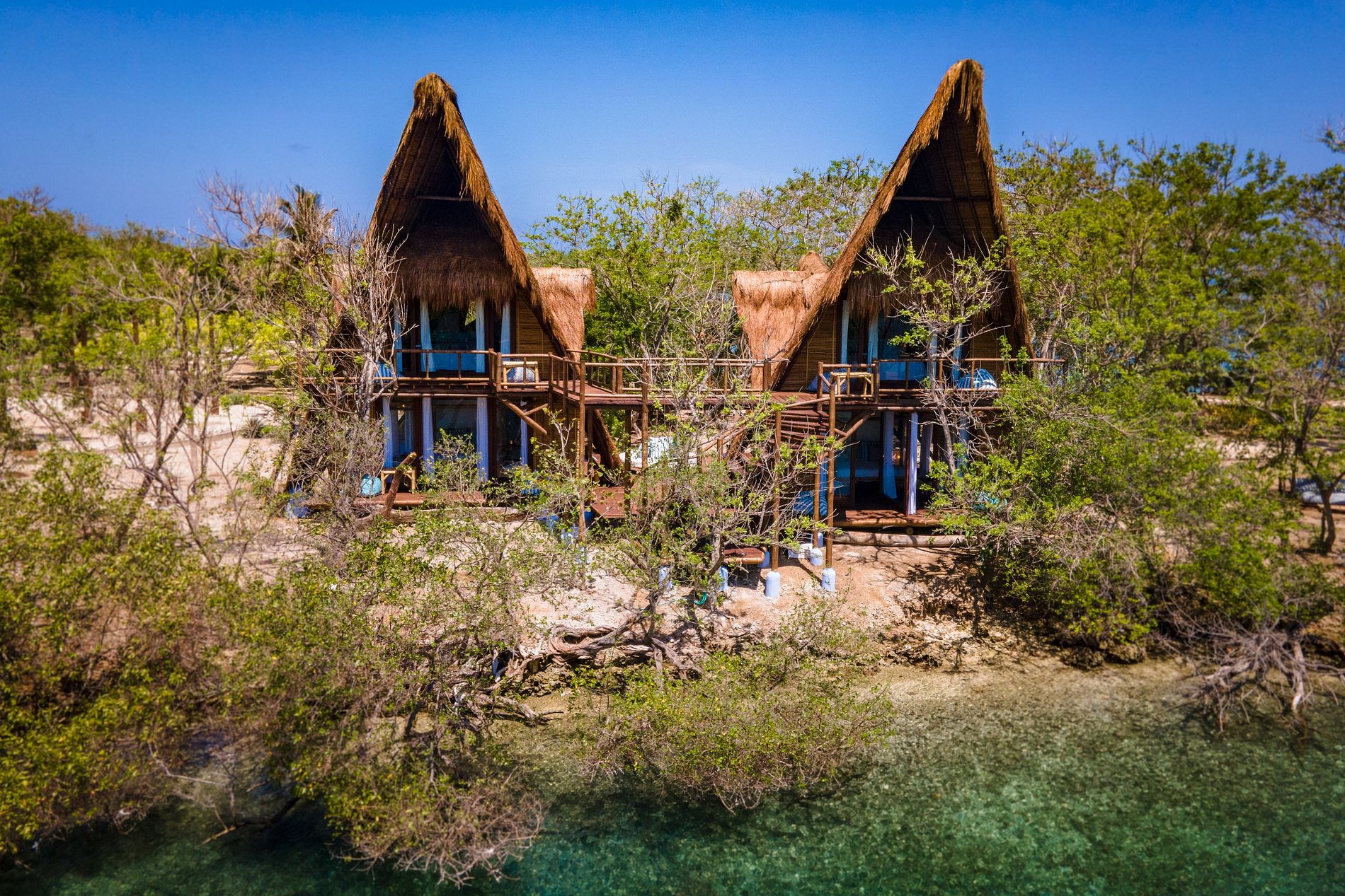 A ilha possui uma grande sala de jantar e bar aberto, juntamente com uma piscina infinita. Nesta ilha podem dormir confortavelmente até 16 adultos, distribuídos em 4 luxuosas casas de praia de belo desenho localizadas entre o mangue e o mar.