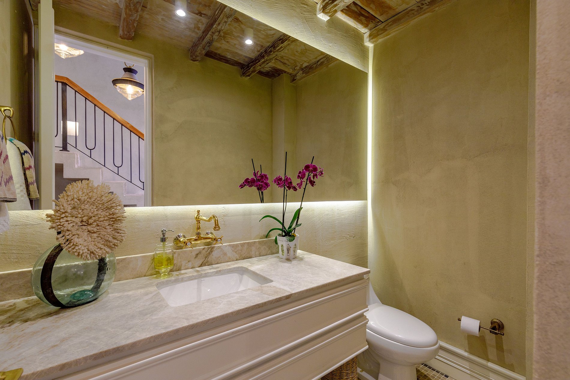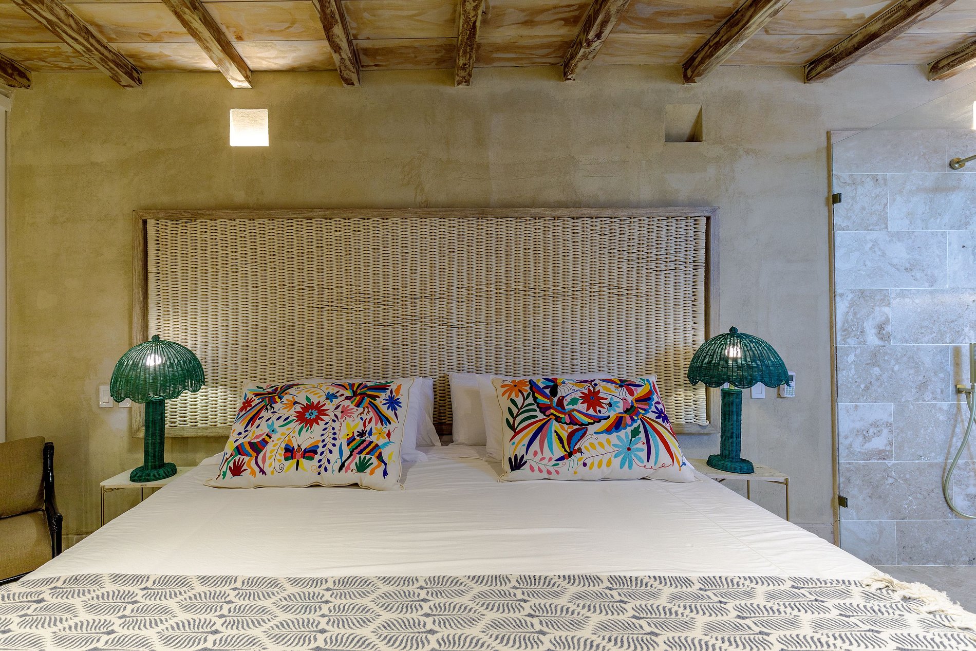Decorada em tons quentes e terrosos, com materiais rústicos de madeira, fibras naturais e detalhes coloridos, a casa é cercada por vegetação exuberante e elementos decorativos artesanais. Os tetos altos e a combinação harmoniosa de estética colonial e modernidade fazem desta propriedade um espaço verdadeiramente único.