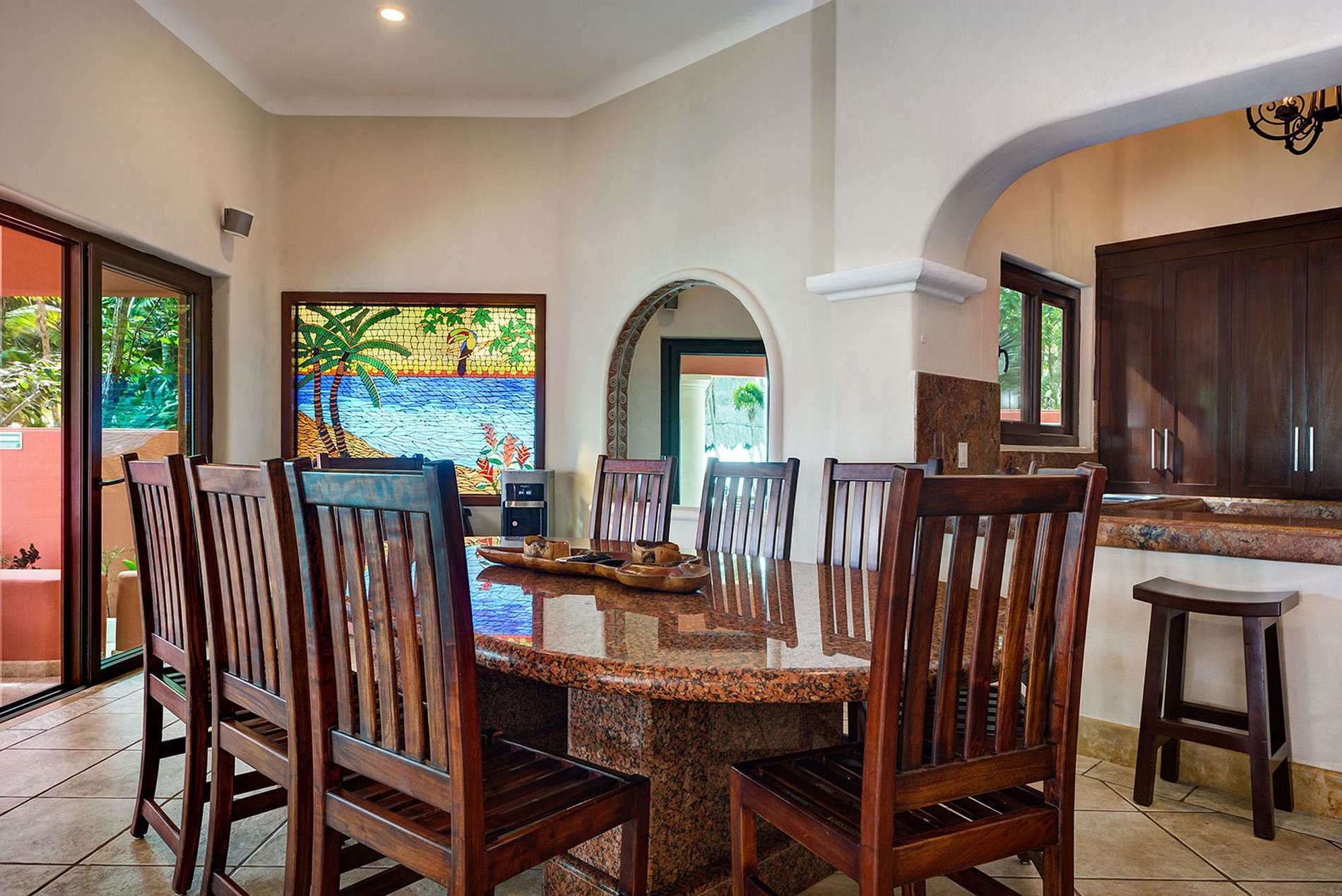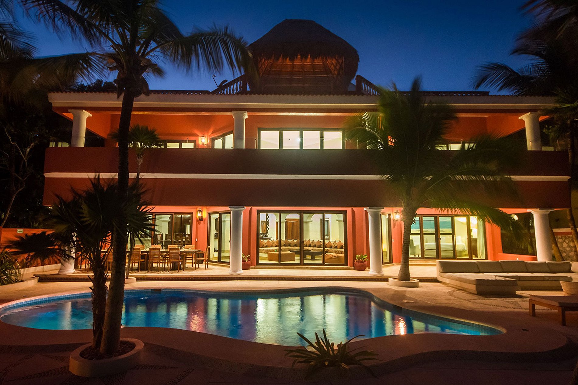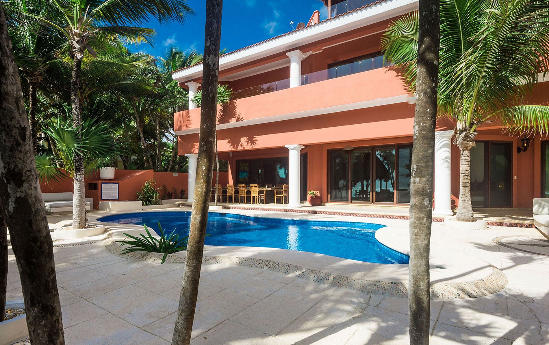 Existem cinco quartos com ar-condicionado artisticamente projetados, com tetos de quatro metros dentro da vila; 2 quartos estão equipados com 2 camas queen-size, dois quartos estão equipados com 1 cama king-size e 1 quarto está equipado com 1 cama queen-size. Existem também 4 encantadoras pousadas localizadas fora; 2 das pensões estão equipadas com 2 camas king-size e as outras 2 pensões possuem 1 cama king-size. Cada um dos 9 quartos está equipado com ventiladores de teto, TV via satélite, DVD player e cofre. Esta magnífica decoração da casa foi inspirada na arquitetura e artesanato mexicanos. Cada quarto tem seu banheiro privativo de luxo em mármore e o banheiro principal possui uma banheira de hidromassagem com uma vista incrível do Caribe.