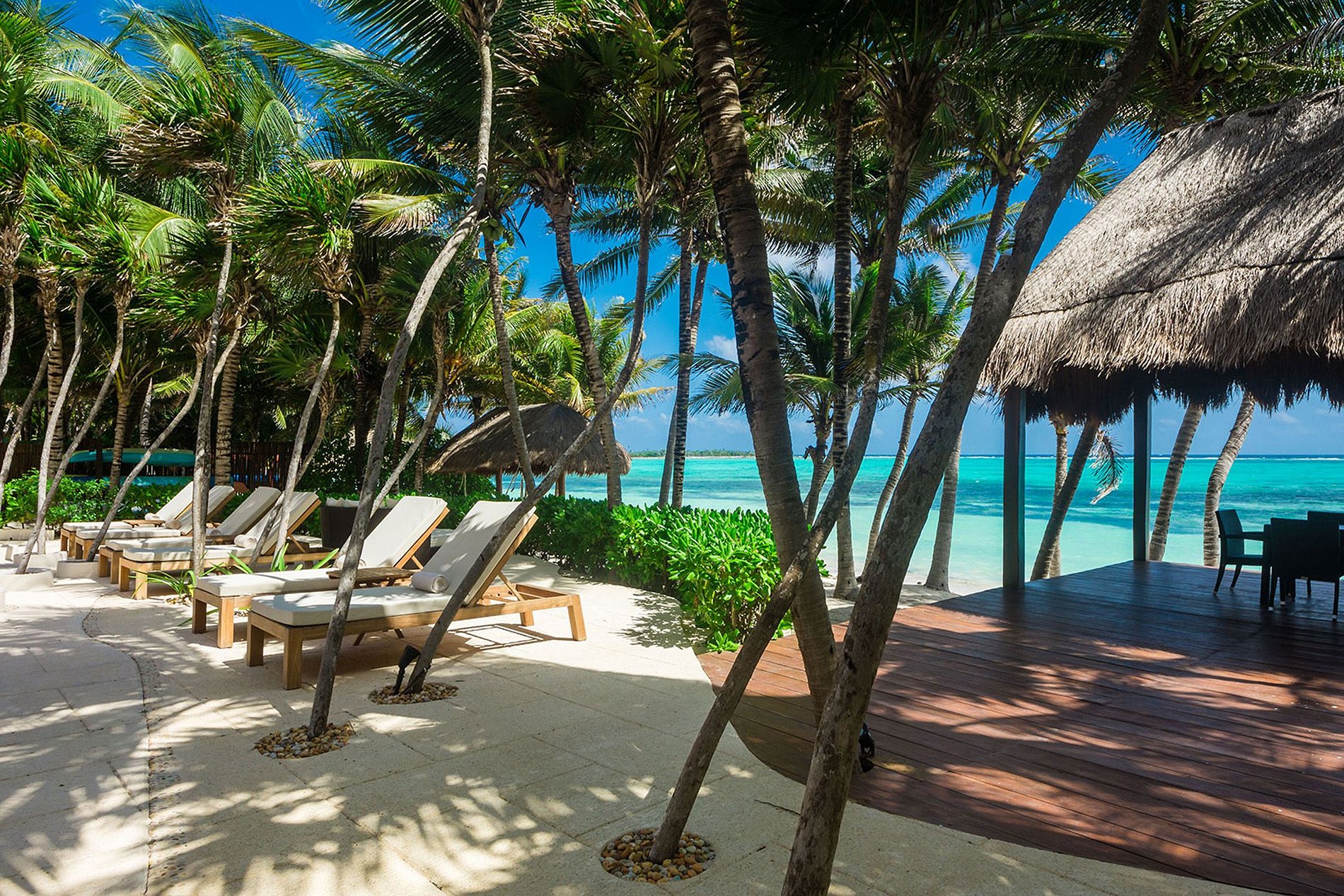 A varanda da cobertura do observatório da casa está equipada com uma impressionante área de estar, guarda-sóis, bar e uma vista deslumbrante da baía, do oceano e da vasta selva. O encantamento está completo quando o sol se põe romanticamente além do horizonte após outro dia fabuloso. Esta casa é verdadeiramente elegante, deliciosamente isolada e incrivelmente espaçosa, uma casa paradisíaca à beira-mar que encanta seus hóspedes com sua beleza, conforto e design luxuoso, uma propriedade exclusiva localizada a 80 pés das praias de areia branca de Tankah, na baía de Soliman, no Caribe. , o segundo maior recife de coral do mundo, lar de peixes tropicais coloridos e muitas variedades de corais e plantas marinhas.