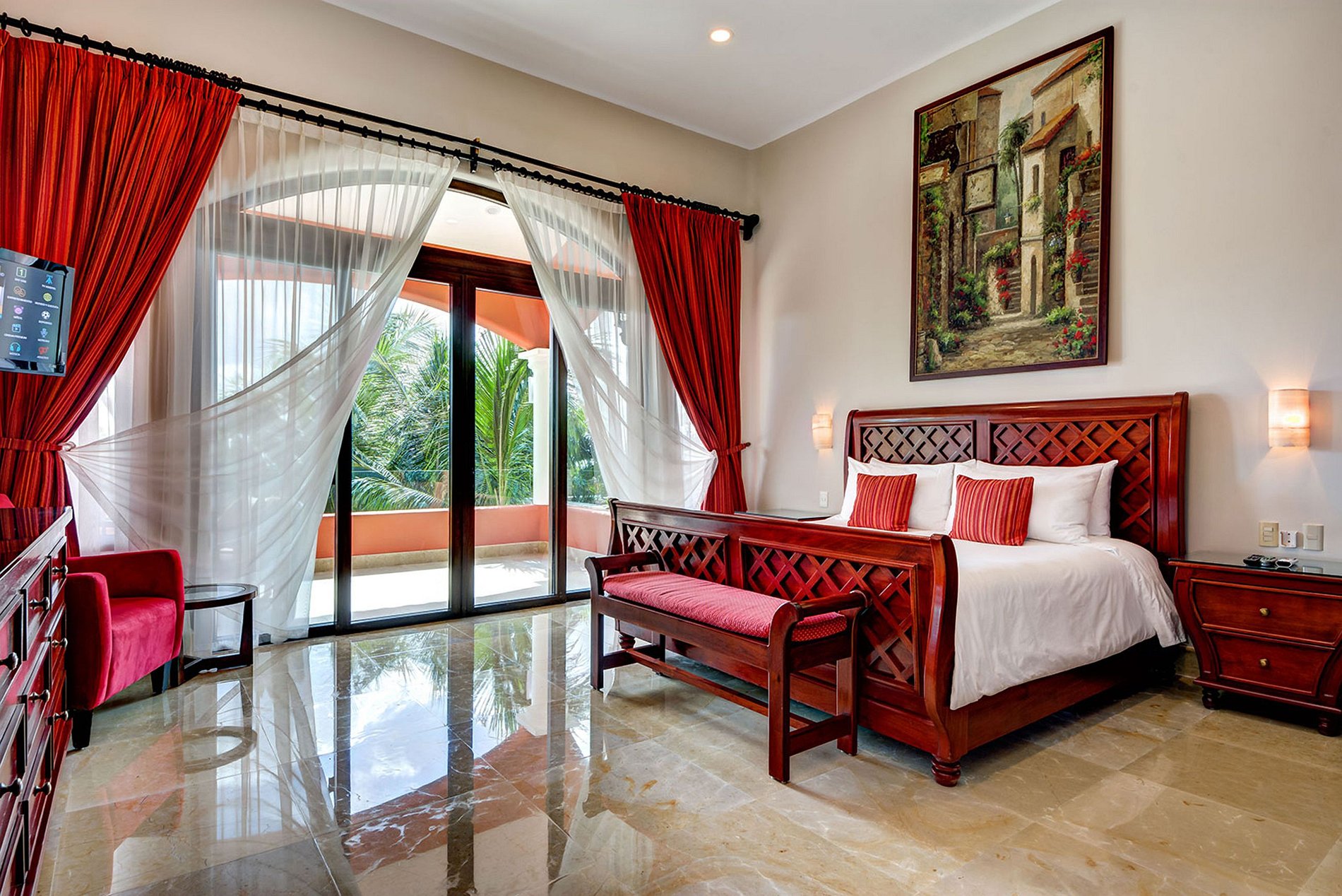 Cama king size, Ar condicionado, Ventilador de teto, Banheiro privativo com banheira e chuveiro, Secador de cabelo, Vista para o oceano, Cofre, TV, Tela da janela