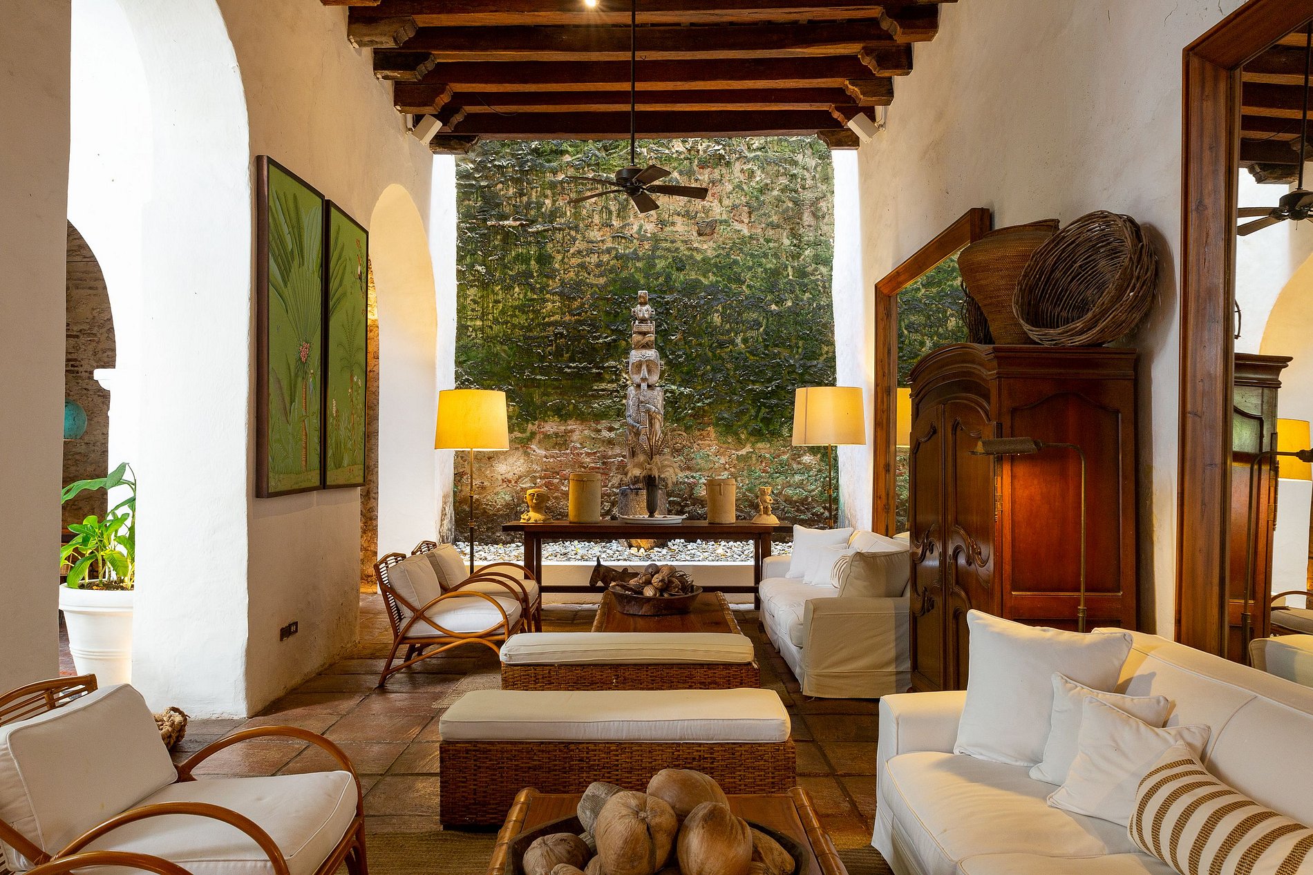 O segundo andar abriga seis quartos espaçosos e decorados de maneira única, incluindo uma suíte duplex que acomoda até quatro hóspedes. Cada quarto é projetado com estilo e conforto, oferecendo roupa de cama de algodão de luxo, toppers de colchão de plumas, ar condicionado, TV via satélite de 43′, cofre, artigos de toalete de luxo, robes de seda e secador de cabelo. Alguns quartos possuem varandas com vistas encantadoras das coloridas ruas de Cartagena ou do sereno jardim interno. O café da manhã está incluído.