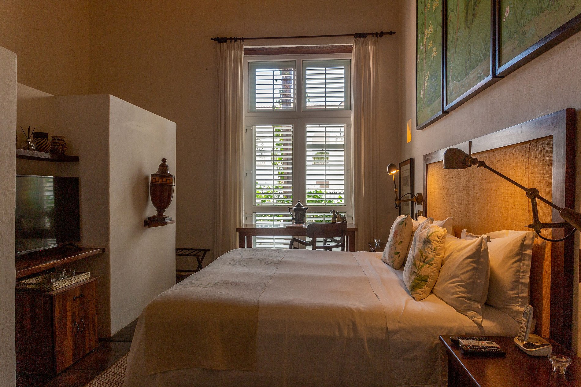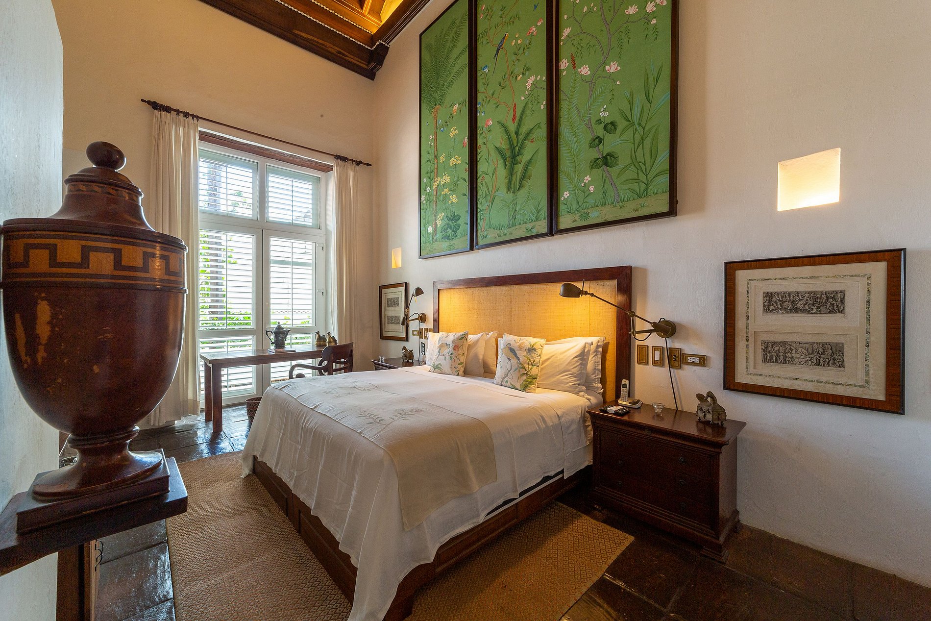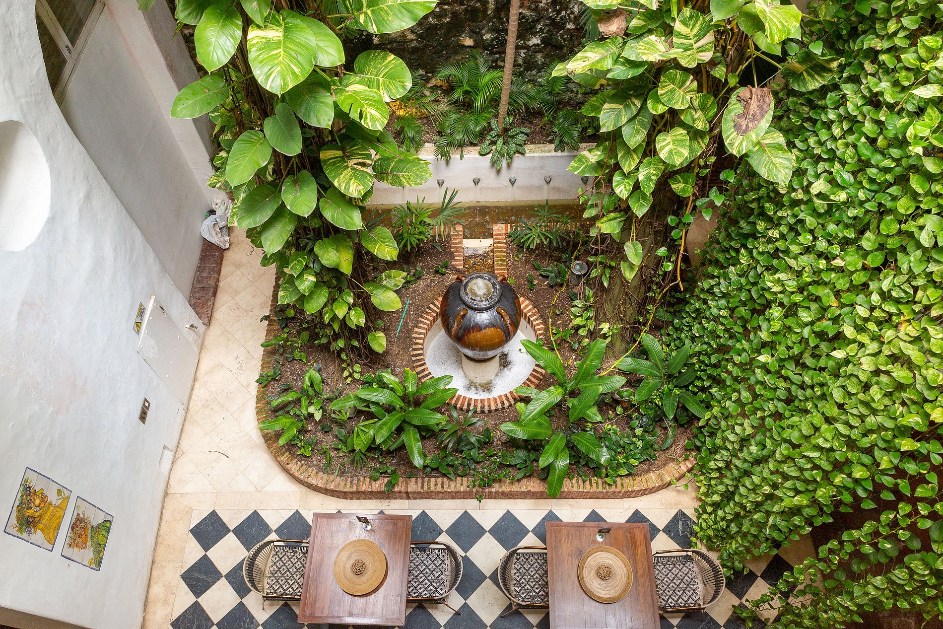 O segundo andar abriga seis quartos espaçosos e decorados de maneira única, incluindo uma suíte duplex que acomoda até quatro hóspedes. Cada quarto é projetado com estilo e conforto, oferecendo roupa de cama de algodão de luxo, toppers de colchão de plumas, ar condicionado, TV via satélite de 43′, cofre, artigos de toalete de luxo, robes de seda e secador de cabelo. Alguns quartos possuem varandas com vistas encantadoras das coloridas ruas de Cartagena ou do sereno jardim interno. O café da manhã está incluído.