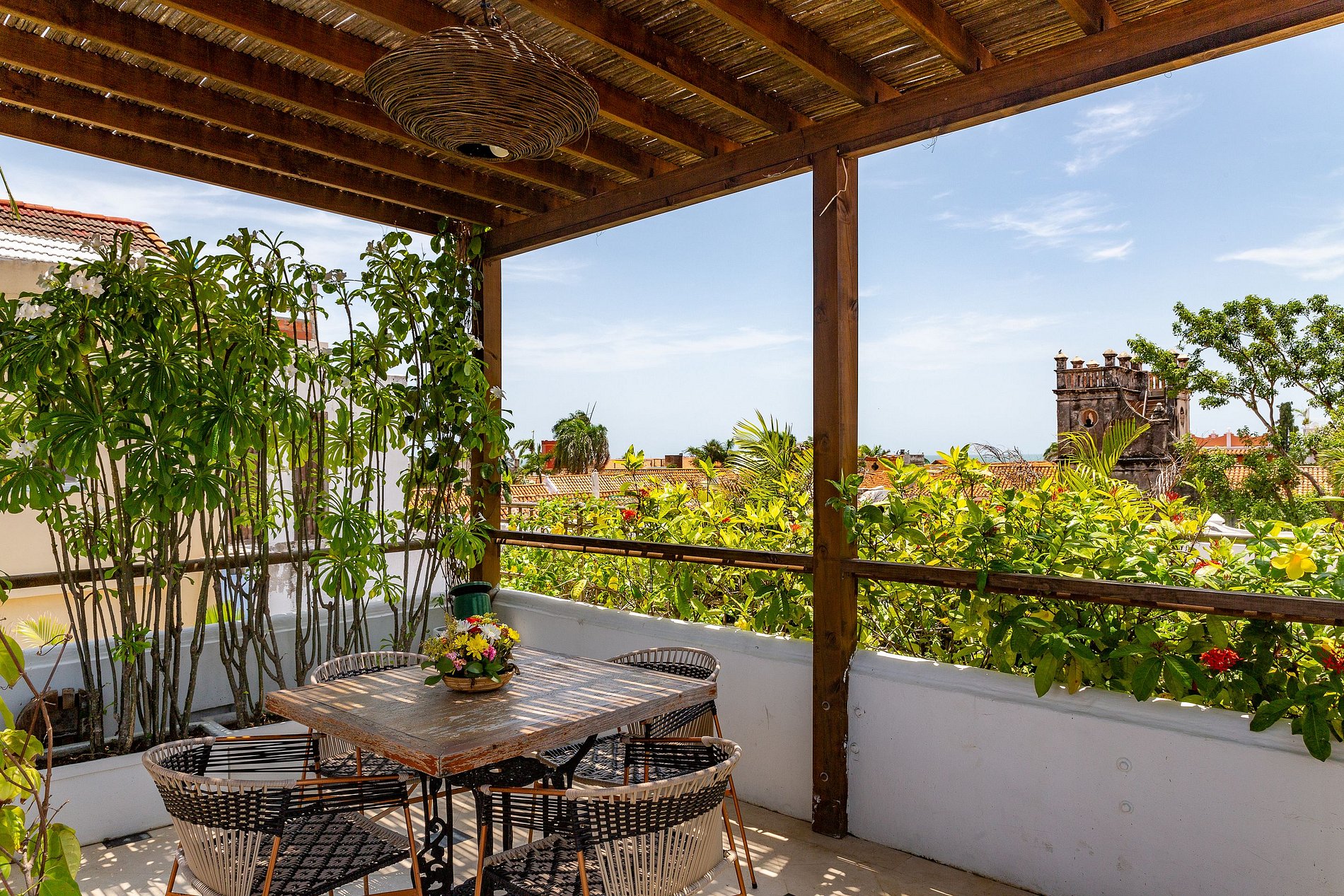 A joia desta residência é o terraço na cobertura no terceiro andar. Aqui, você encontrará uma impressionante piscina com vistas deslumbrantes da Catedral, um dos pontos turísticos mais icônicos da cidade. A cobertura também dispõe de uma área de lounge, mesas com guarda-sóis e vegetação exuberante, criando uma atmosfera idílica para relaxar durante o dia ou à noite.