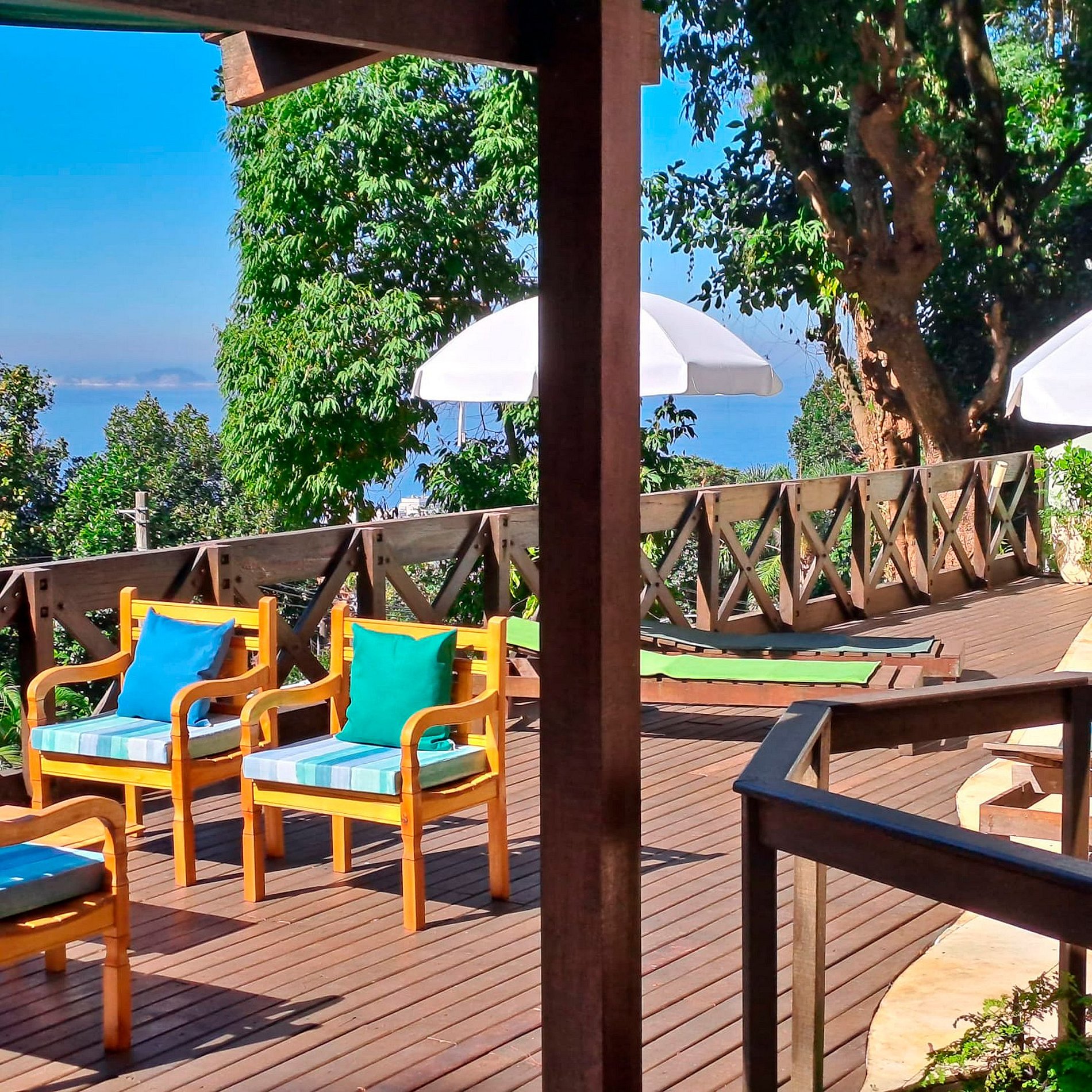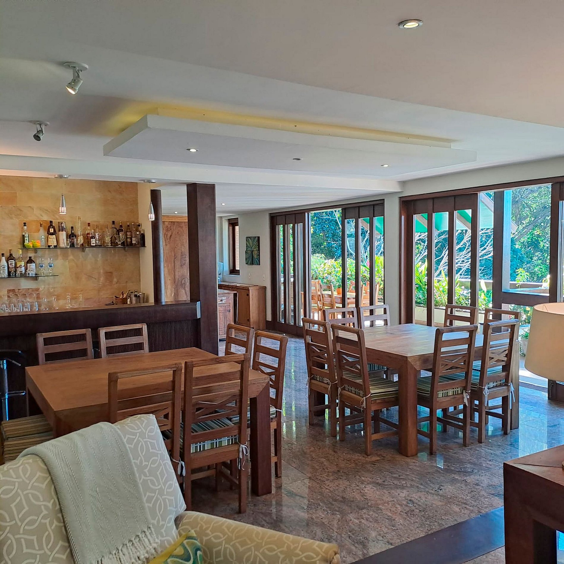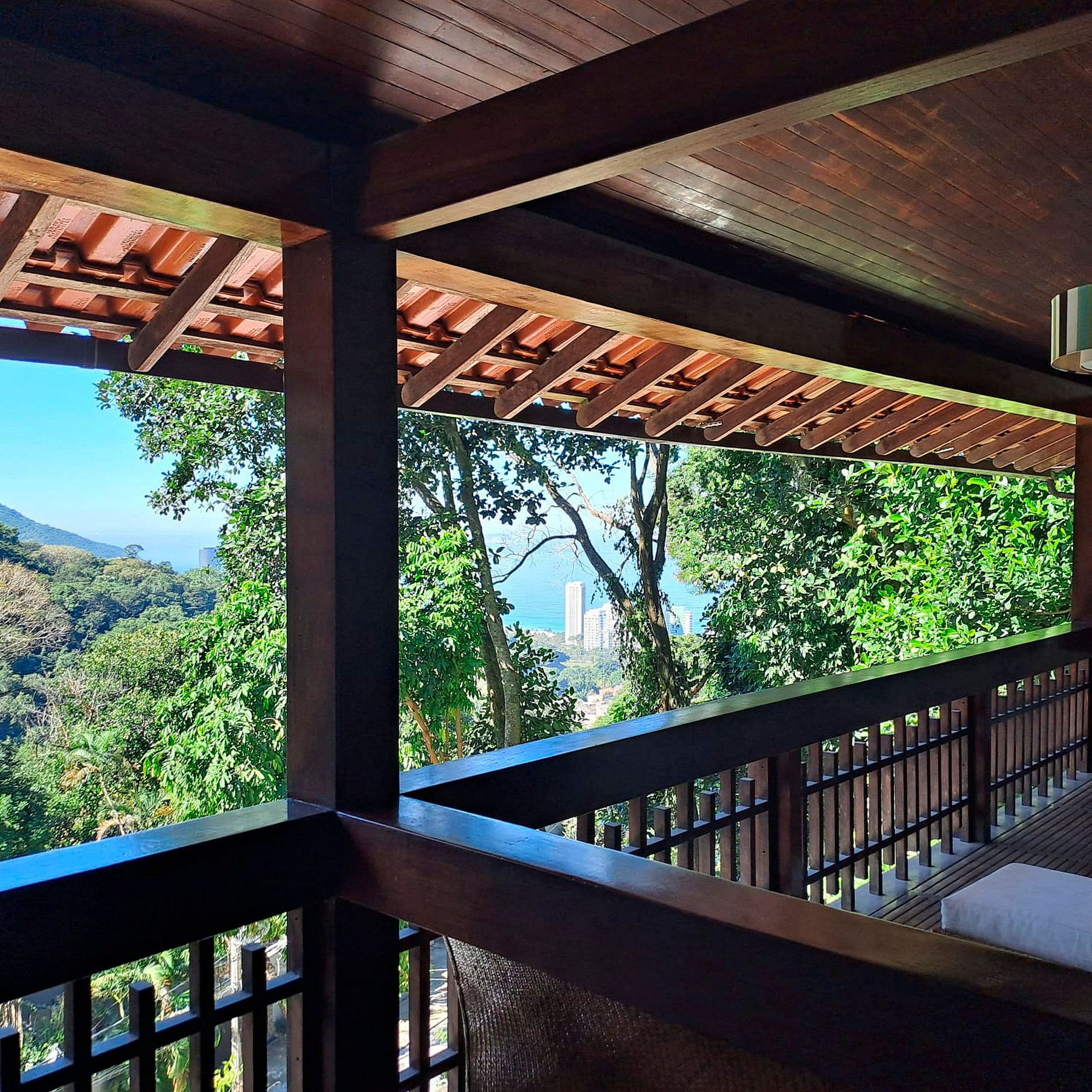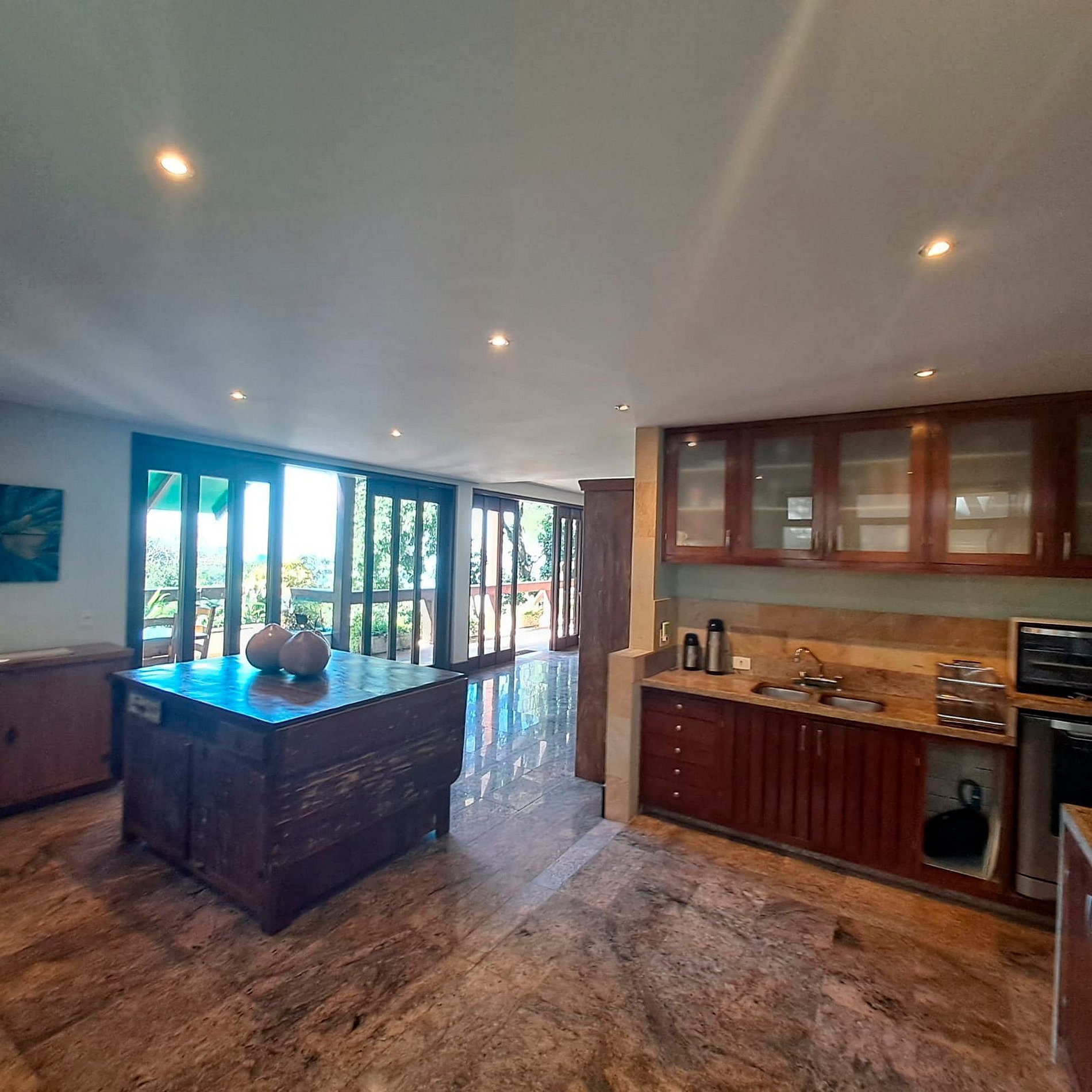 A área externa conta com uma piscina e espaço para entretenimento, proporcionando diversão e relaxamento ao ar livre. Os quartos são climatizados e possuem terraços com vistas incríveis para a floresta e a montanha, garantindo uma estadia confortável e inesquecível.