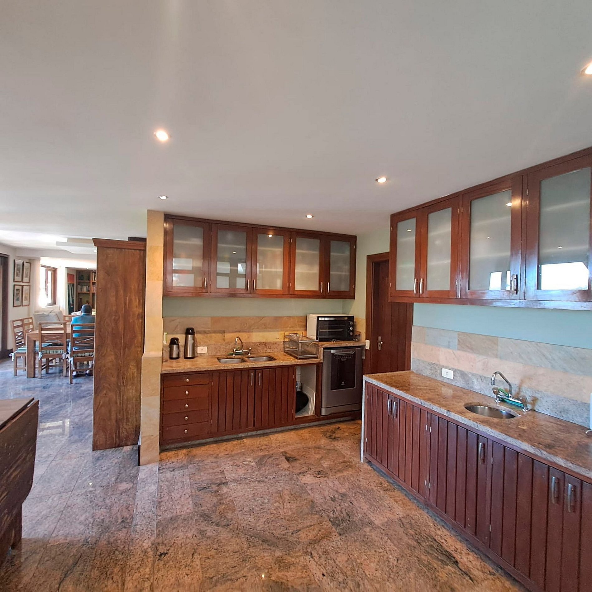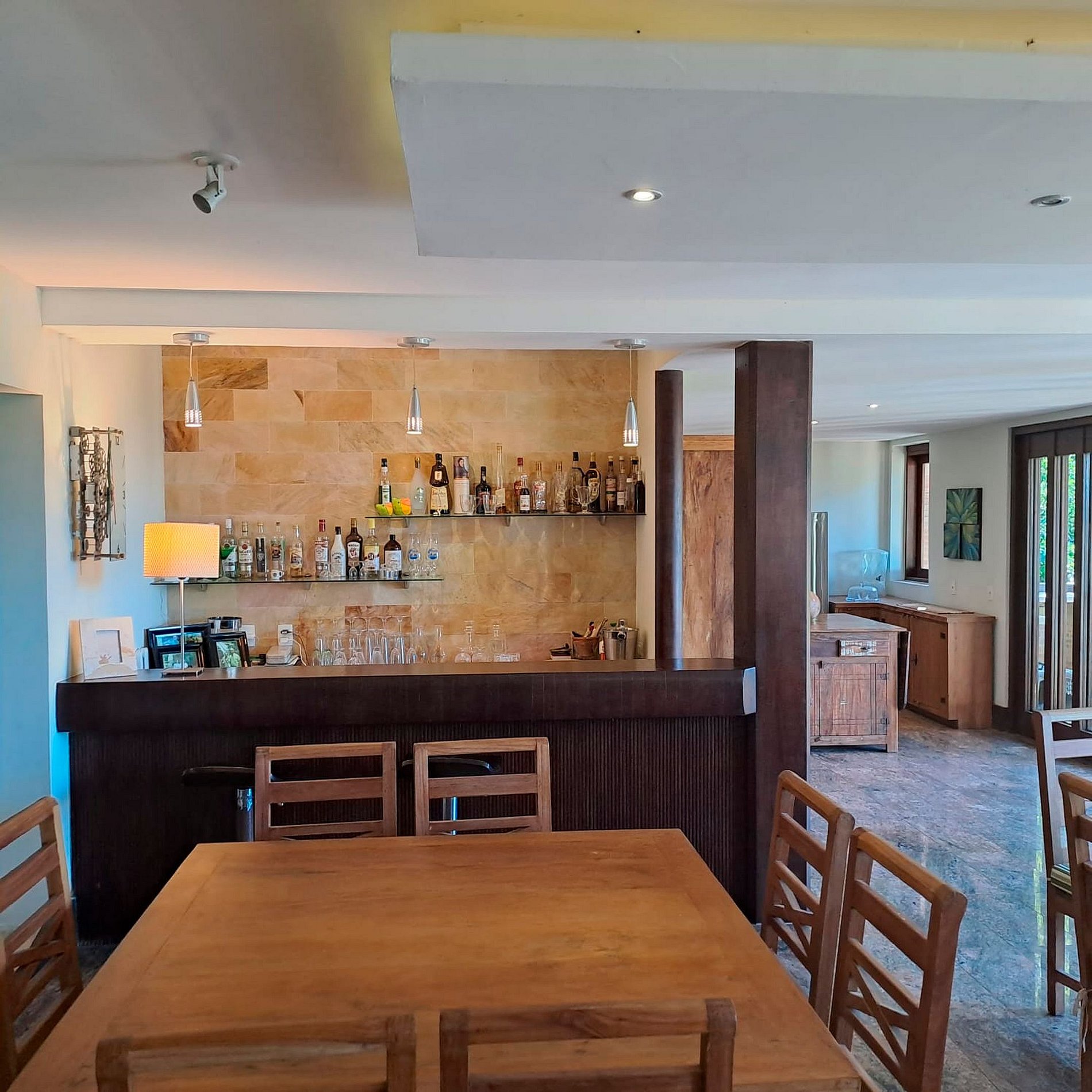 O design eco-friendly com mobiliário de madeira maciça confere um toque de elegância e sustentabilidade à propriedade.