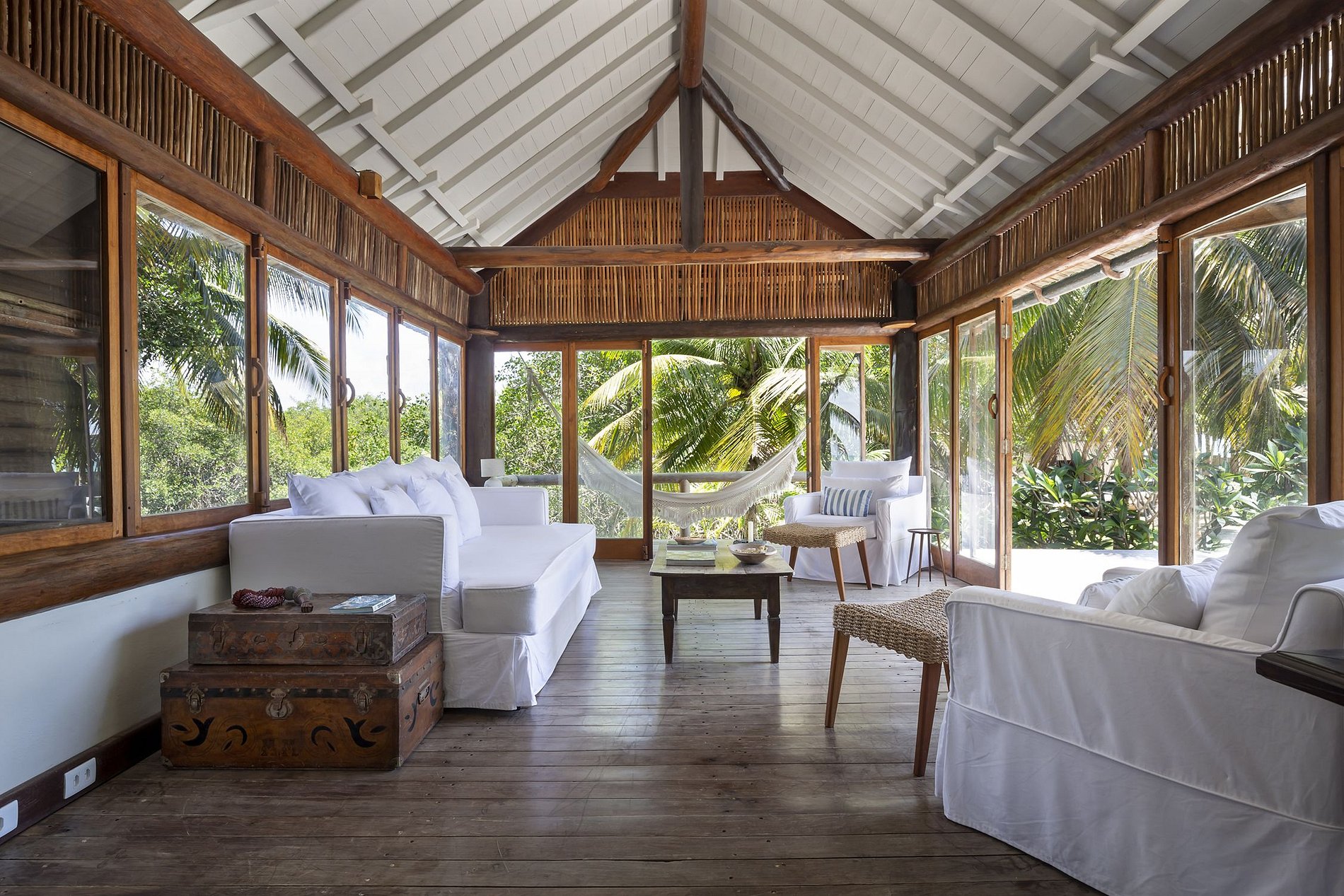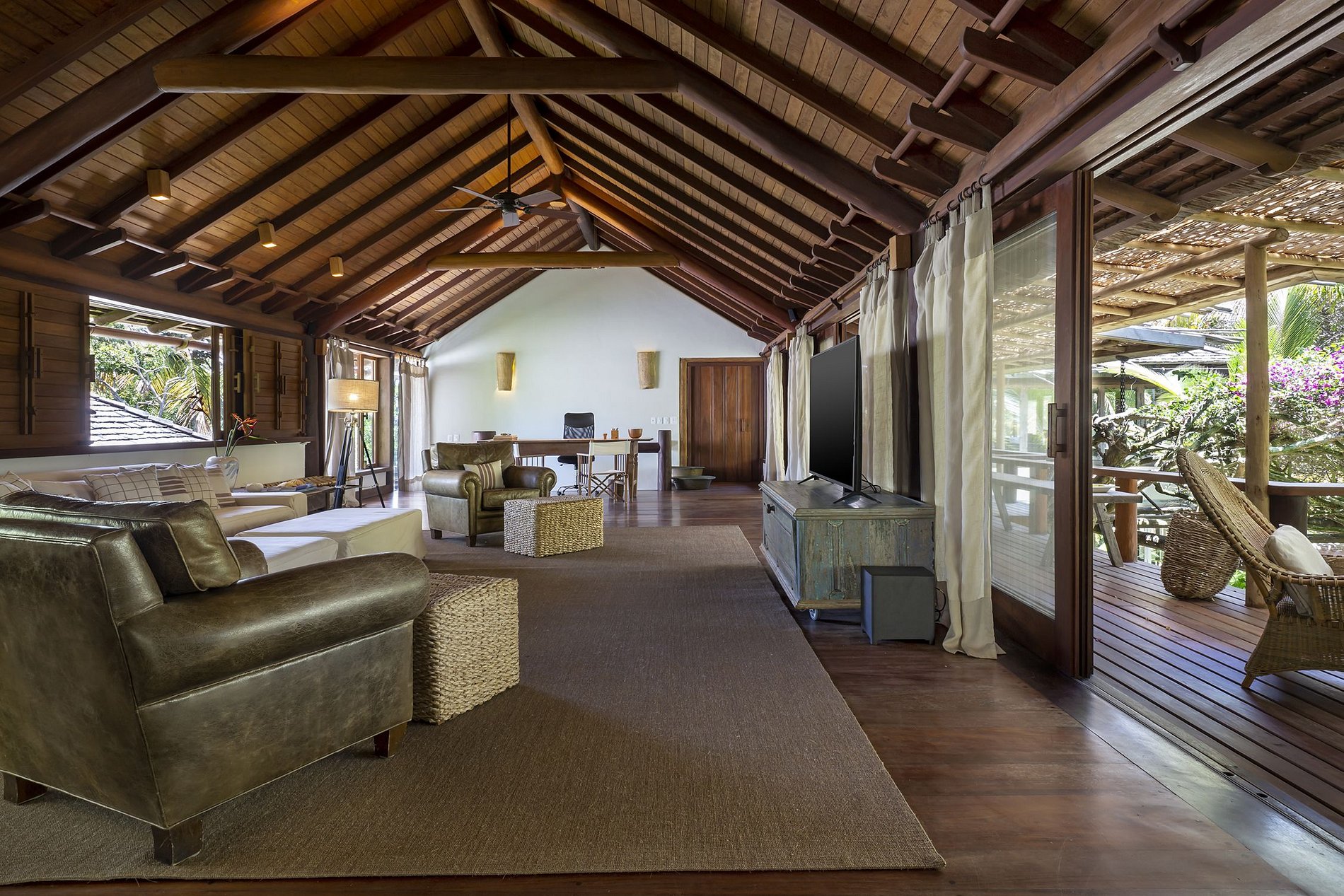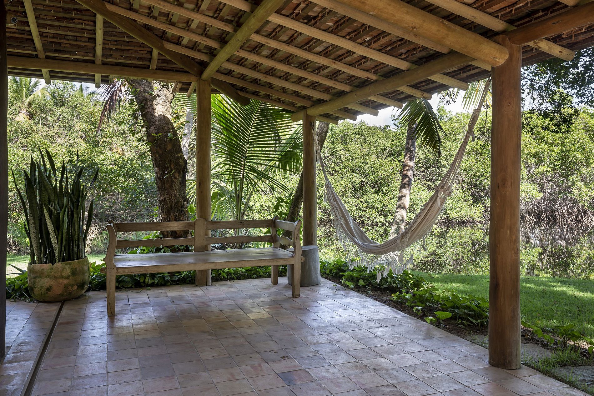 Villa com acesso exclusivo, passando por uma ponte de madeira sobre um afluente do Rio da Barra. Ambiente de natureza intocada, de construção em harmonia que preenchem os espaços e sentidos.