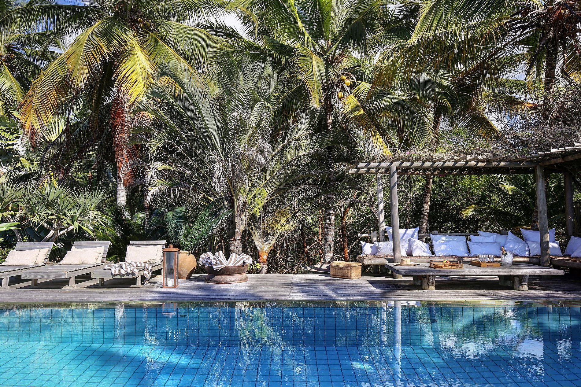 Casa com piscina, área de estar e suítes com vista mar.