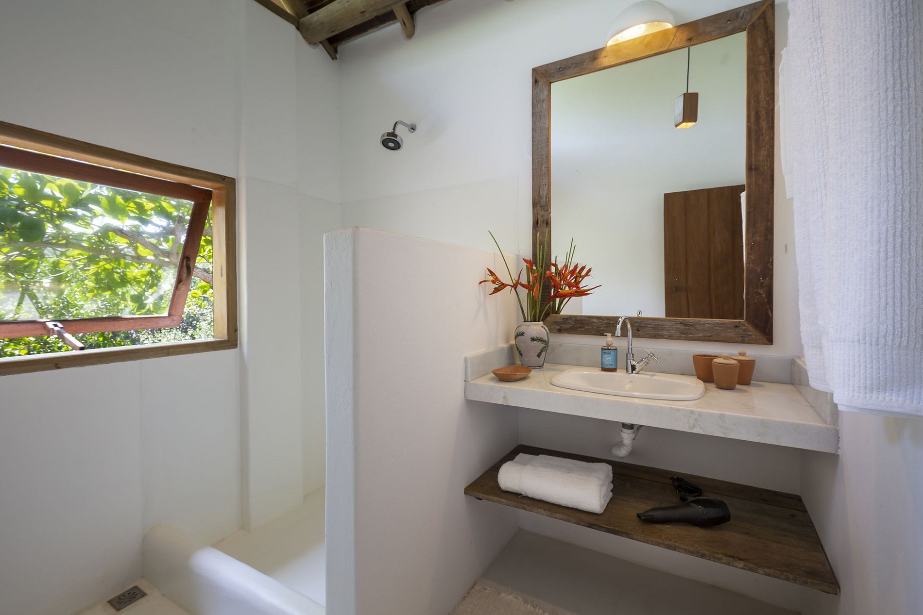 - SUÍTE JARDIM com vista mar, varanda, cama king size, closet, banheiro, secador de cabelo, AC;