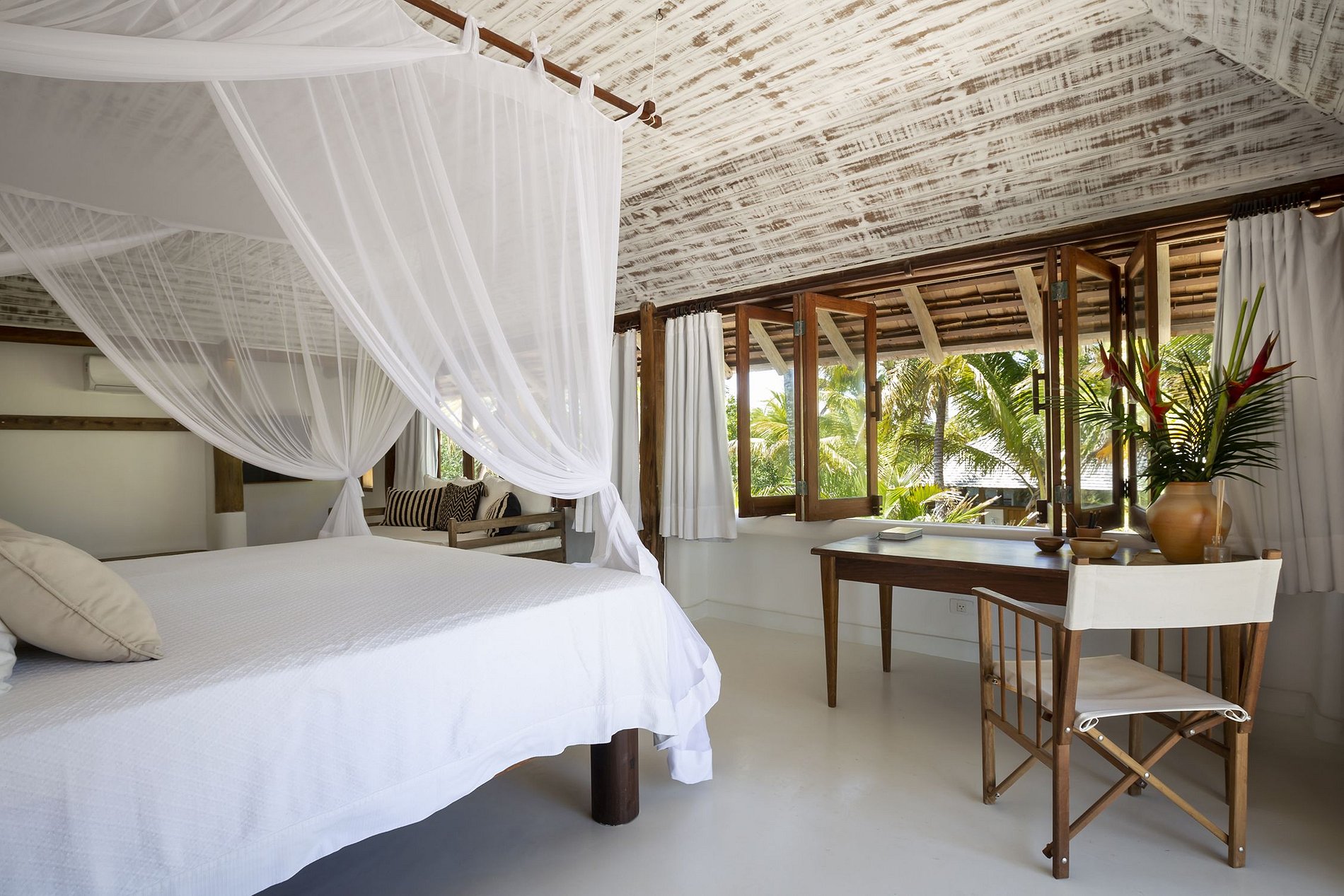 - SUÍTE MASTER com vista para a lagoa, sala íntima e deck com vista mar, banheiro amplo com banheira, secador de cabelo, closet, AC, TV 60”, frigobar e cama king size;