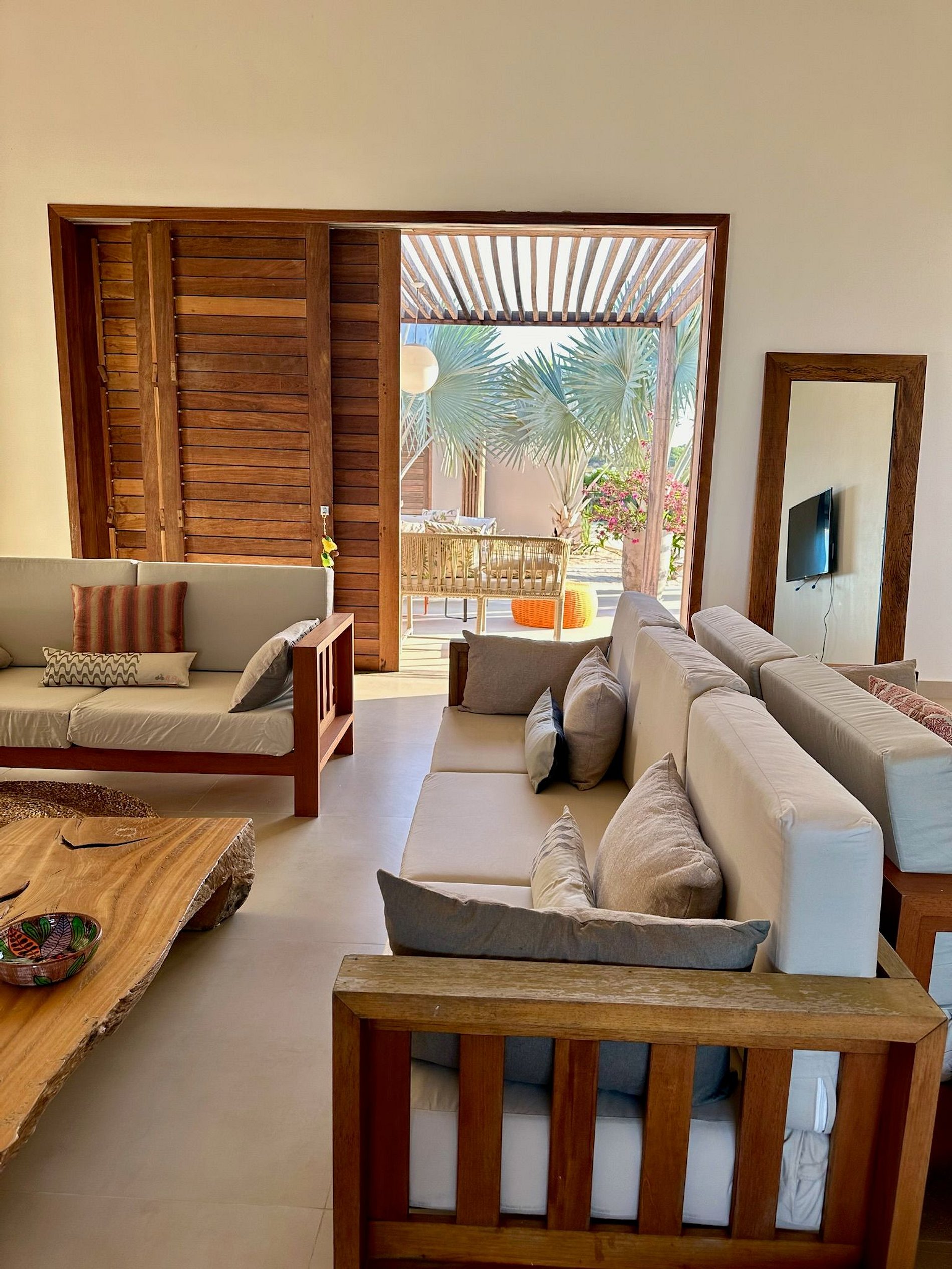 A casa tem diversos ambientes que integram a sala de estar e ao jardim interno. Sobre a cobertura da sala está um terraço ou solarium para os seus aperitivos ao pôr do sol, ou mesmo apreciar o belo céu estrelado.