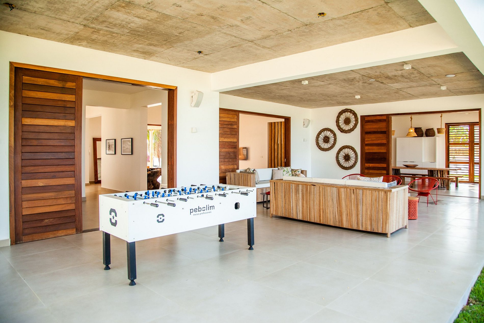 A casa tem diversos ambientes que integram a sala de estar e ao jardim interno. Sobre a cobertura da sala está um terraço ou solarium para os seus aperitivos ao pôr do sol, ou mesmo apreciar o belo céu estrelado.