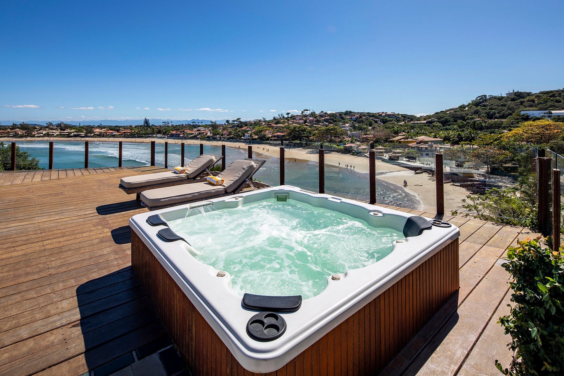 Essa mansão é localizada dentro de um seguro condomínio fechado e conta com 2 vagas de garagem cobertas. Os ambientes fechados são climatizados para criar uma atmosfera maravilhosamente aconchegante nos dias mais quentes. E se estiver muito calor e não quiser ficar dentro de casa é só dar um mergulho na piscina ou sair para descobrir as lindas praias de Búzios!