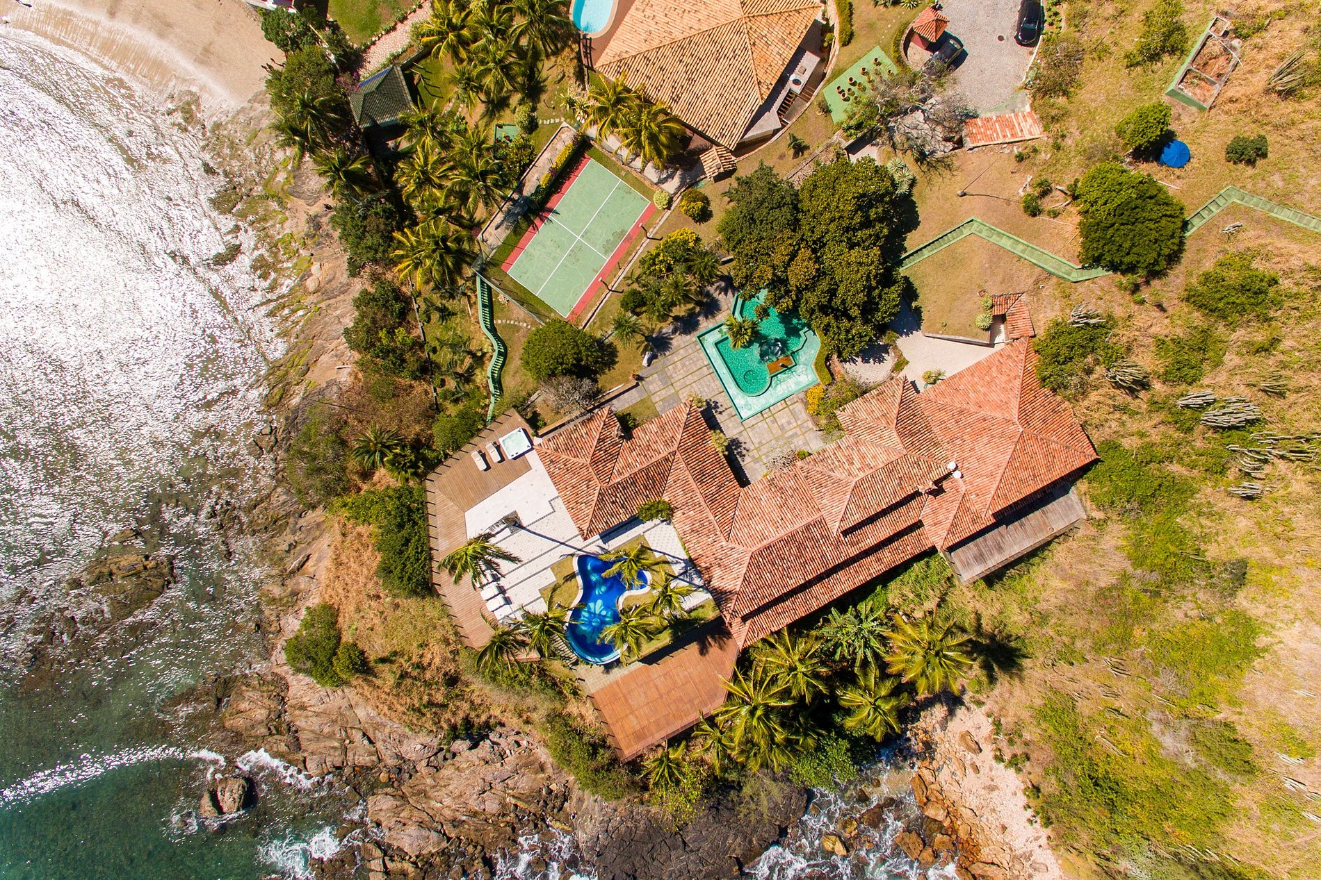 Uma fabulosa villa de luxo com 5 suítes localizado no alto de uma formação rochosa à beira-mar, no condomínio fechado Ferradurinha.