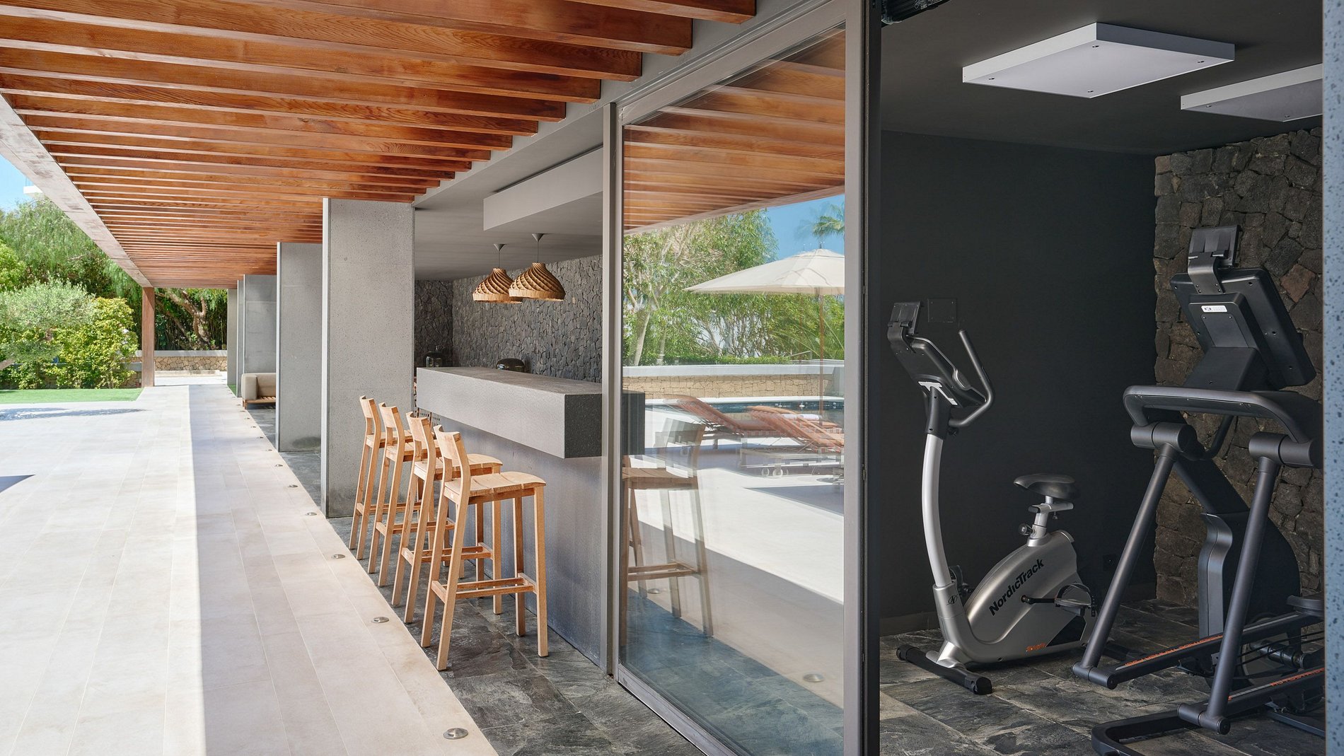 A villa dispõe de suítes luxuosas, cada uma com banheiro privativo, garantindo conforto e privacidade a todos os hóspedes. Para momentos de relaxamento, a propriedade oferece uma academia totalmente equipada, um hammam privativo e uma aconchegante sala de TV para noites de cinema. Os apreciadores de vinho poderão desfrutar de uma cave especialmente projetada para armazenar e exibir uma coleção refinada.